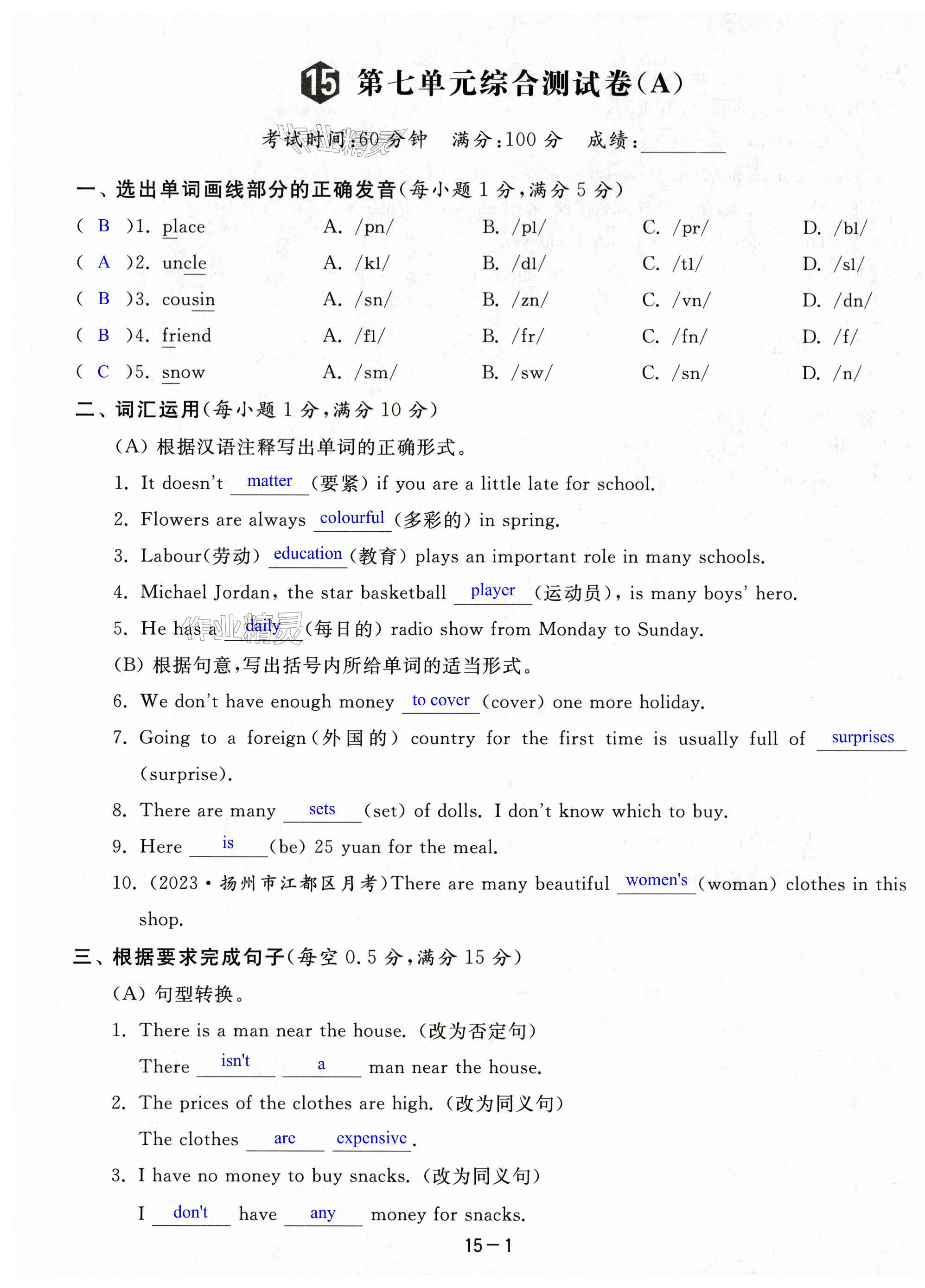注:目前有些书本章节名称可能整理的还不是很完善,但都是按照顺序排列的,请同学们按照顺序仔细查找。练习册 2024年亮点给力大试卷七年级英语上册译林版 答案主要是用来给同学们做完题方便对答案用的,请勿直接抄袭。