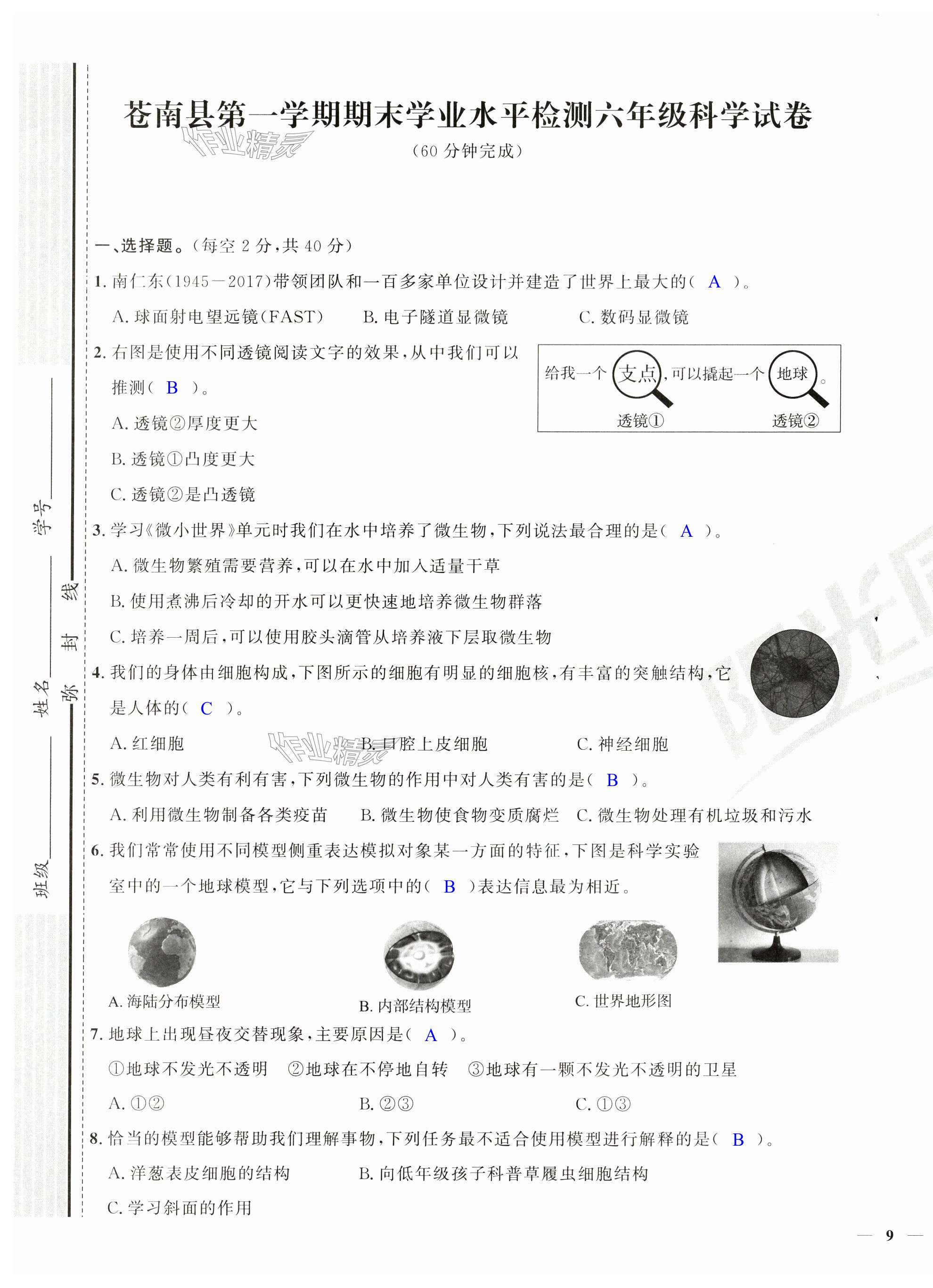 注:目前有些书本章节名称可能整理的还不是很完善,但都是按照顺序排列的,请同学们按照顺序仔细查找。练习册 2024年阳光同学课时优化作业六年级科学上册教科版 答案主要是用来给同学们做完题方便对答案用的,请勿直接抄袭。
