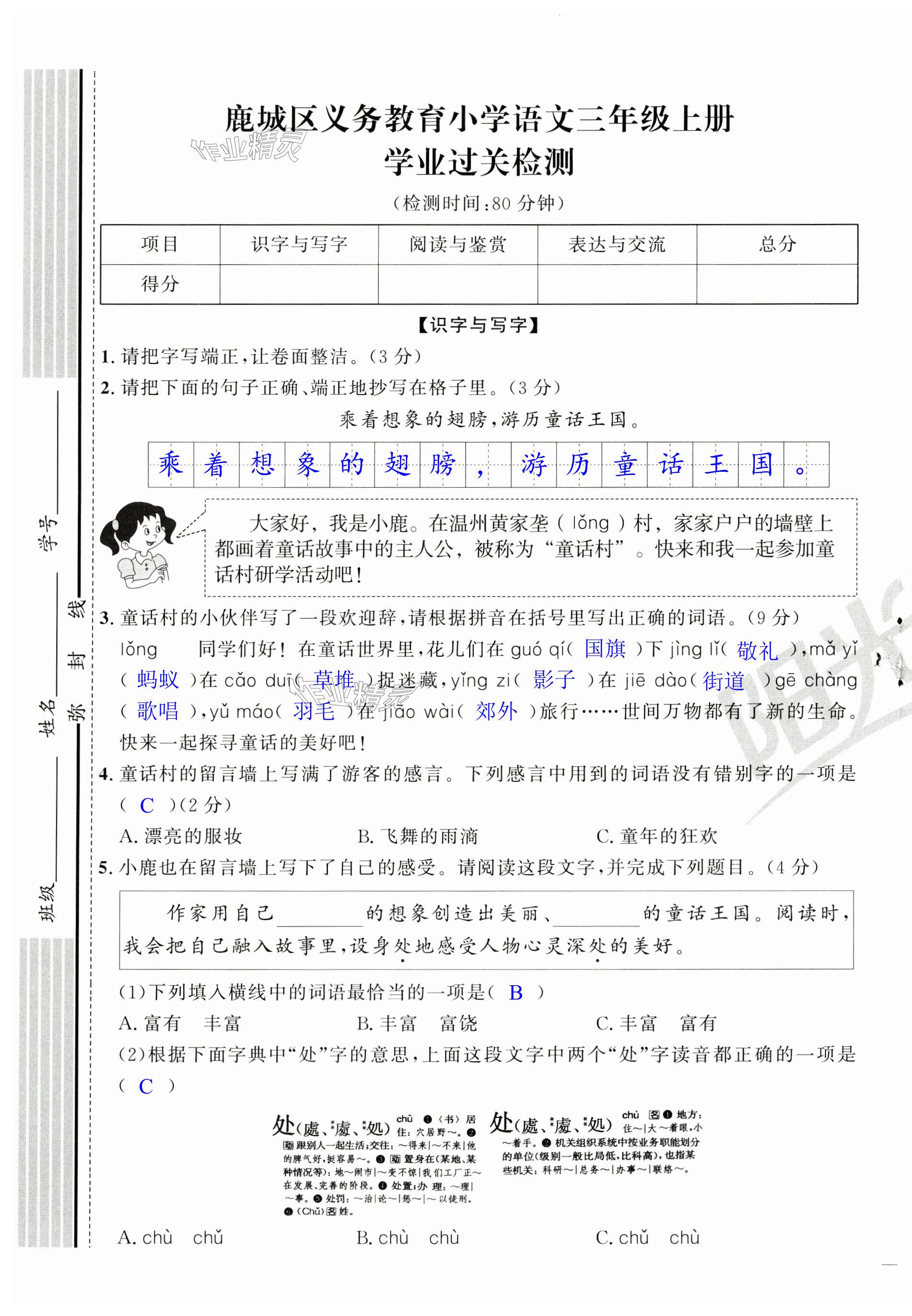 注:目前有些书本章节名称可能整理的还不是很完善,但都是按照顺序排列的,请同学们按照顺序仔细查找。练习册 2024年阳光同学课时达标训练三年级语文上册人教版浙江专版 答案主要是用来给同学们做完题方便对答案用的,请勿直接抄袭。