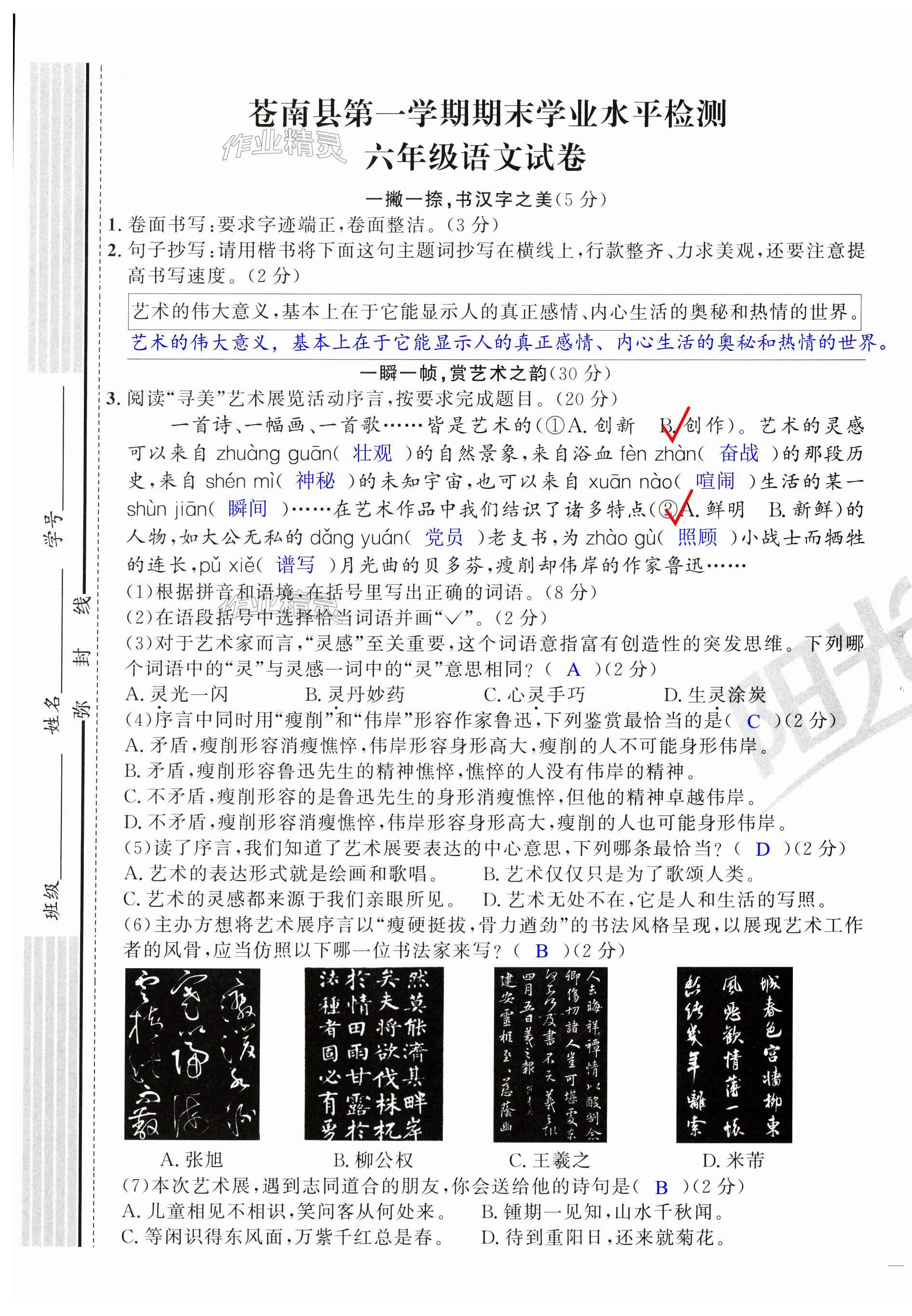 注:目前有些书本章节名称可能整理的还不是很完善,但都是按照顺序排列的,请同学们按照顺序仔细查找。练习册 2024年阳光同学课时达标训练六年级语文上册人教版浙江专版 答案主要是用来给同学们做完题方便对答案用的,请勿直接抄袭。