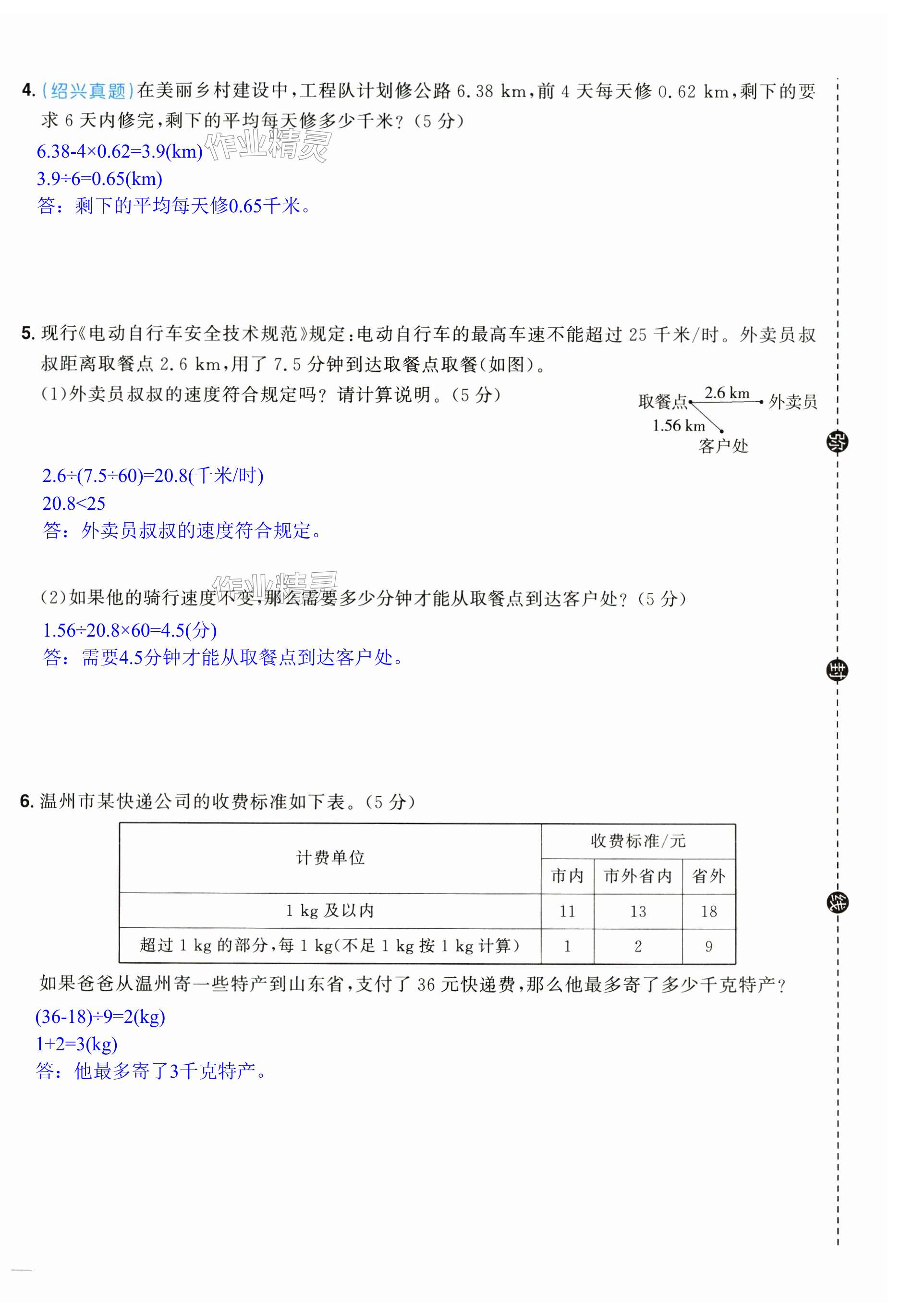 2024年阳光同学课时达标训练五年级数学上册人教版浙江专版