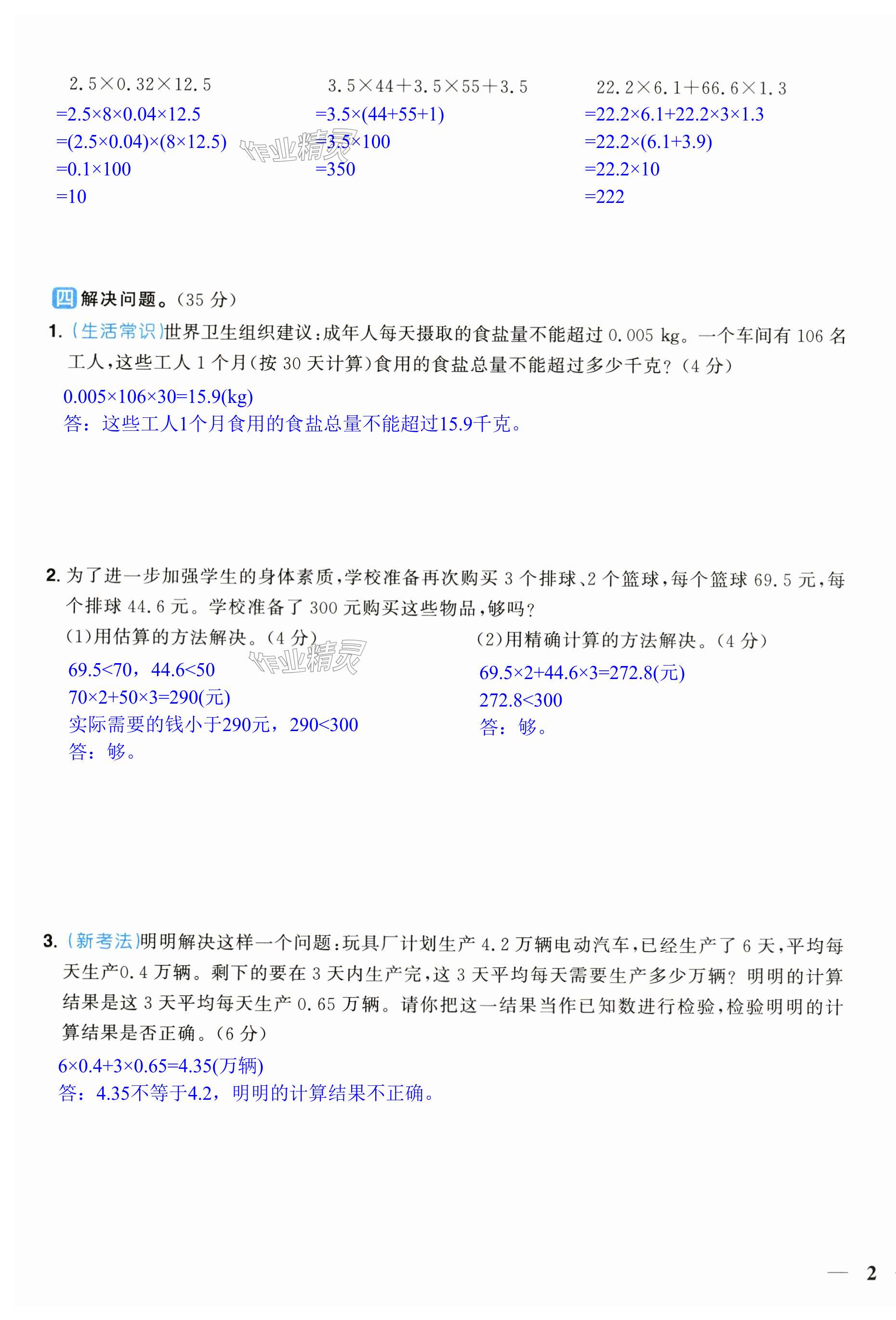 2024年阳光同学课时达标训练五年级数学上册人教版浙江专版