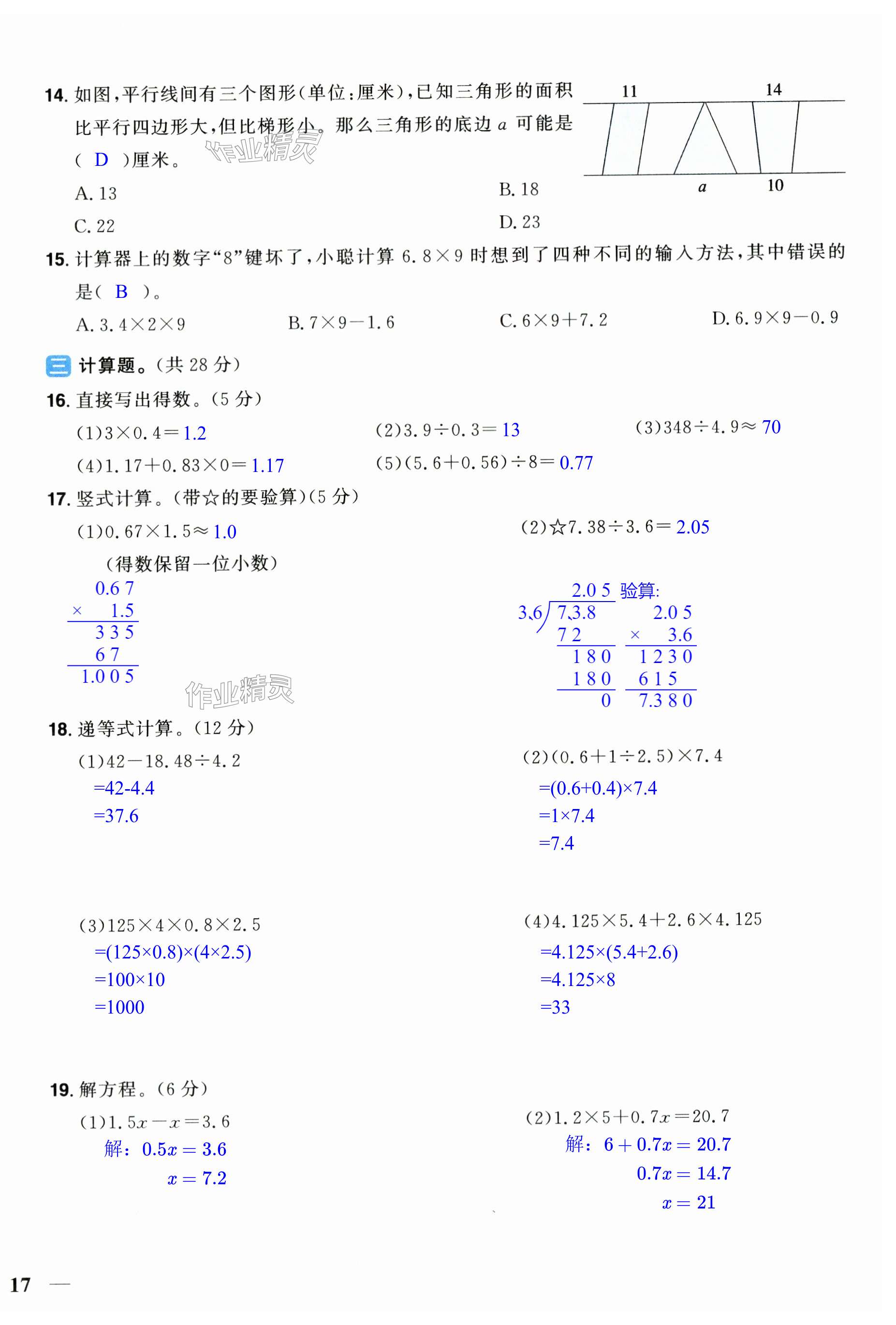 注:目前有些书本章节名称可能整理的还不是很完善,但都是按照顺序排列的,请同学们按照顺序仔细查找。练习册 2024年阳光同学课时达标训练五年级数学上册人教版浙江专版 答案主要是用来给同学们做完题方便对答案用的,请勿直接抄袭。