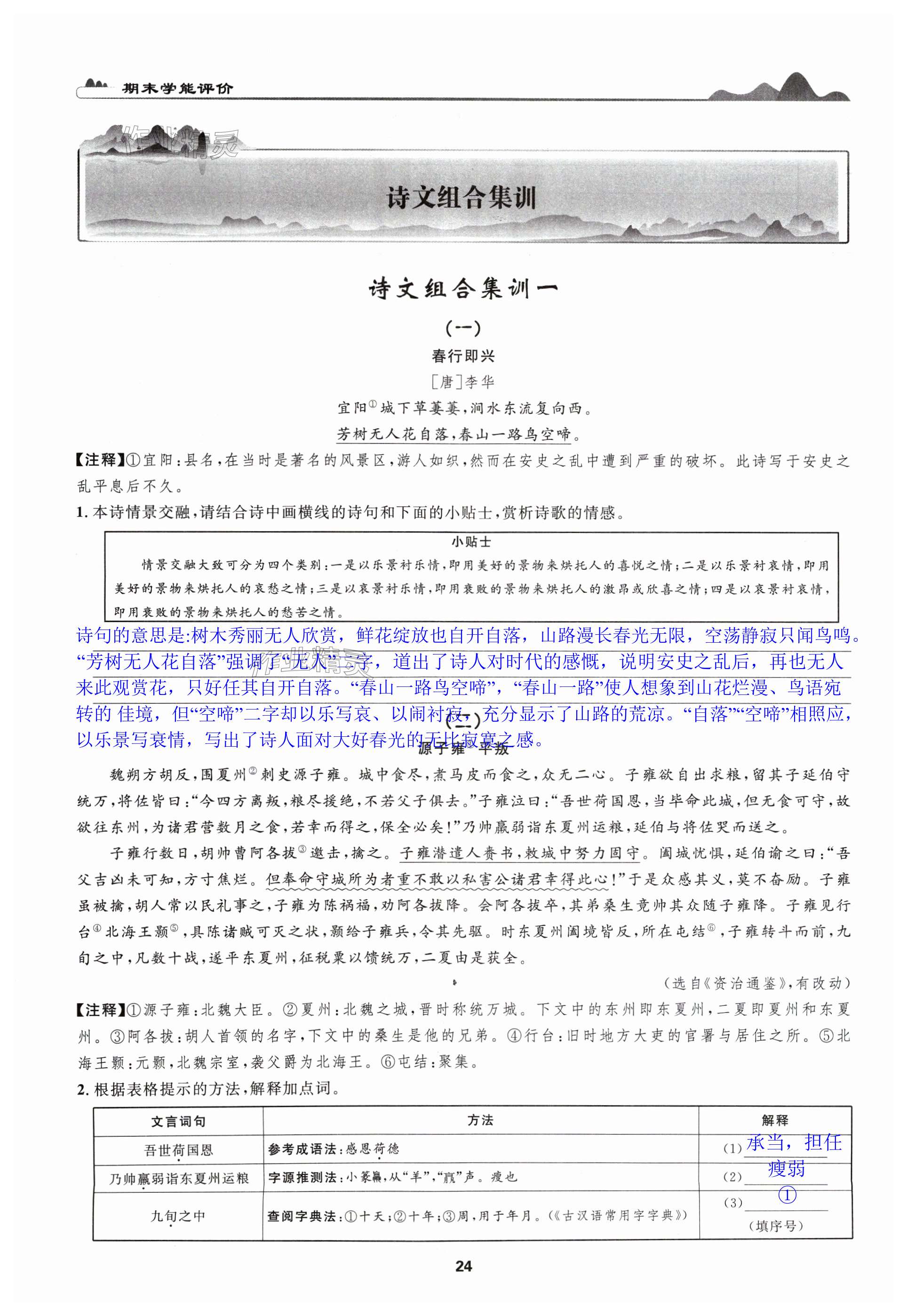 注:目前有些书本章节名称可能整理的还不是很完善,但都是按照顺序排列的,请同学们按照顺序仔细查找。练习册 2024年古诗文高效导学八年级语文上册人教版 答案主要是用来给同学们做完题方便对答案用的,请勿直接抄袭。