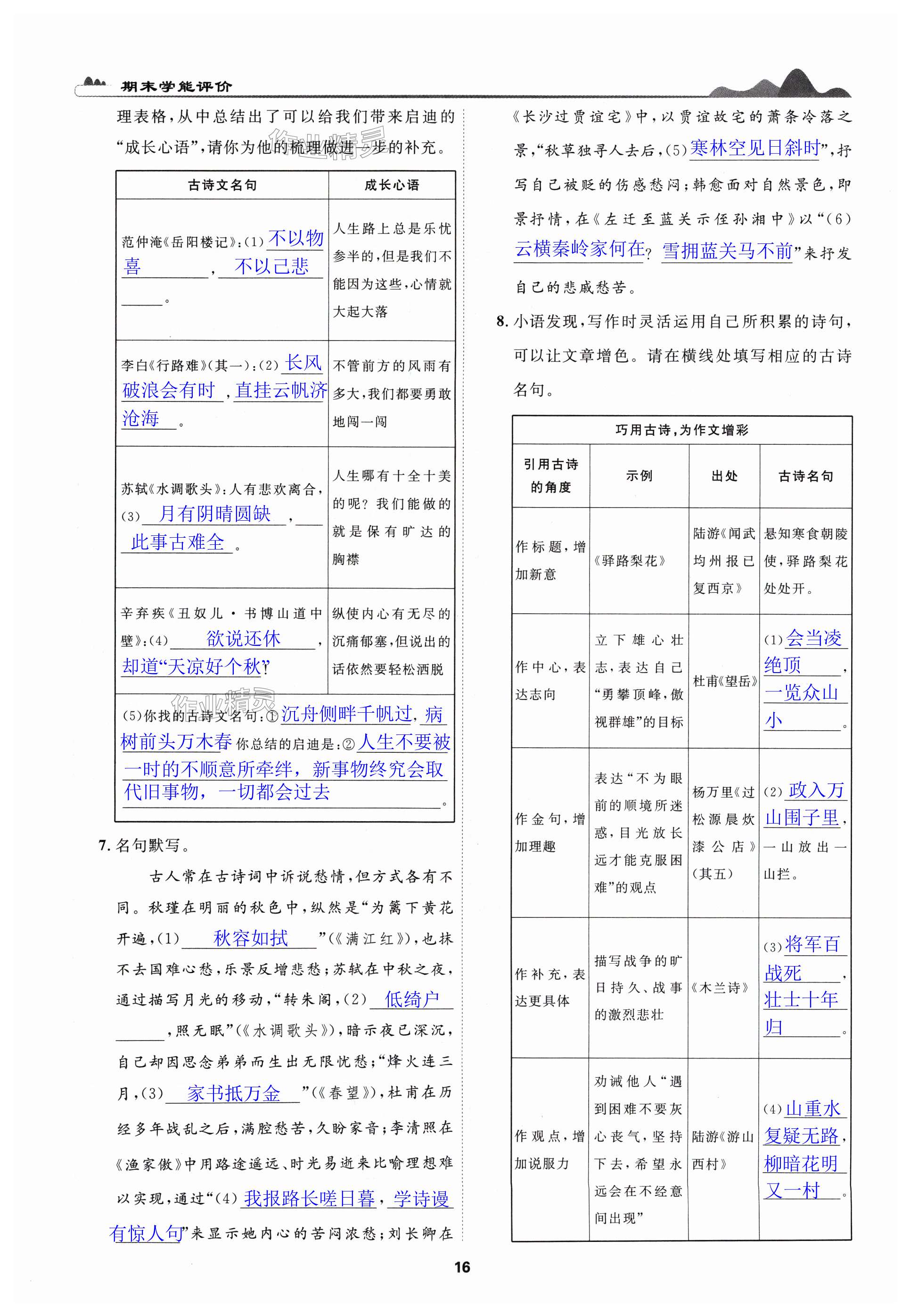 注:目前有些书本章节名称可能整理的还不是很完善,但都是按照顺序排列的,请同学们按照顺序仔细查找。练习册 2024年古诗文高效导学九年级语文全一册人教版 答案主要是用来给同学们做完题方便对答案用的,请勿直接抄袭。
