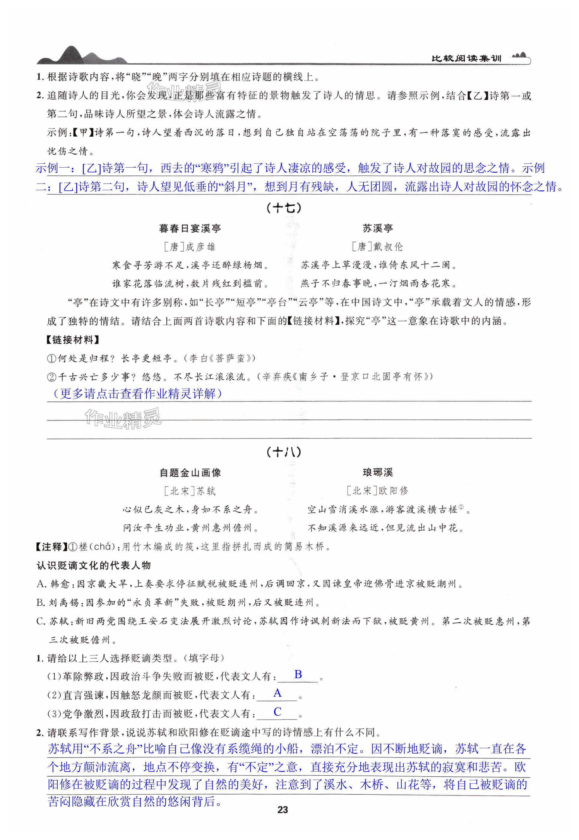 注:目前有些书本章节名称可能整理的还不是很完善,但都是按照顺序排列的,请同学们按照顺序仔细查找。练习册 2024年古诗文高效导学九年级语文全一册人教版 答案主要是用来给同学们做完题方便对答案用的,请勿直接抄袭。