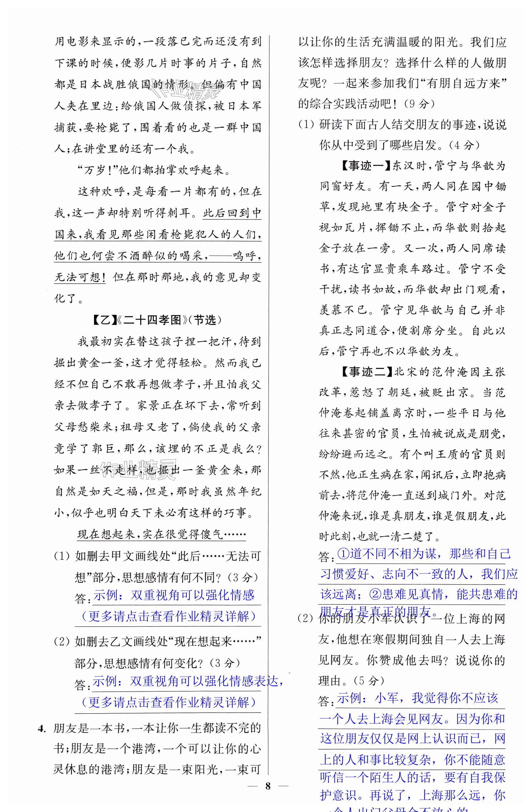 注:目前有些书本章节名称可能整理的还不是很完善,但都是按照顺序排列的,请同学们按照顺序仔细查找。练习册 2024年小题狂做七年级语文上册人教版提优版 答案主要是用来给同学们做完题方便对答案用的,请勿直接抄袭。