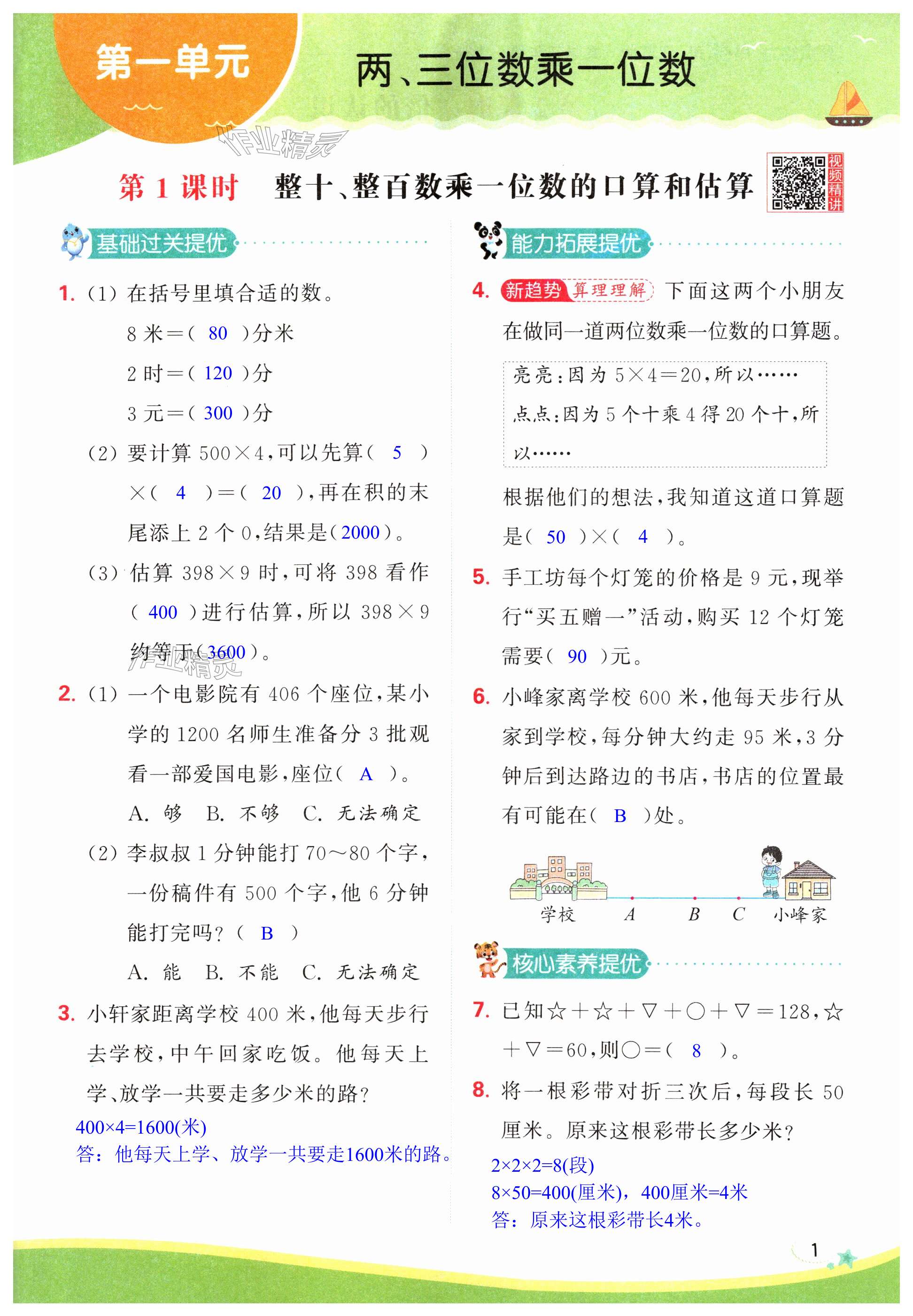 注:目前有些书本章节名称可能整理的还不是很完善,但都是按照顺序排列的,请同学们按照顺序仔细查找。练习册2024年亮点给力提优班三年级数学上册苏教版答案主要是用来给同学们做完题方便对答案用的,请勿直接抄袭。