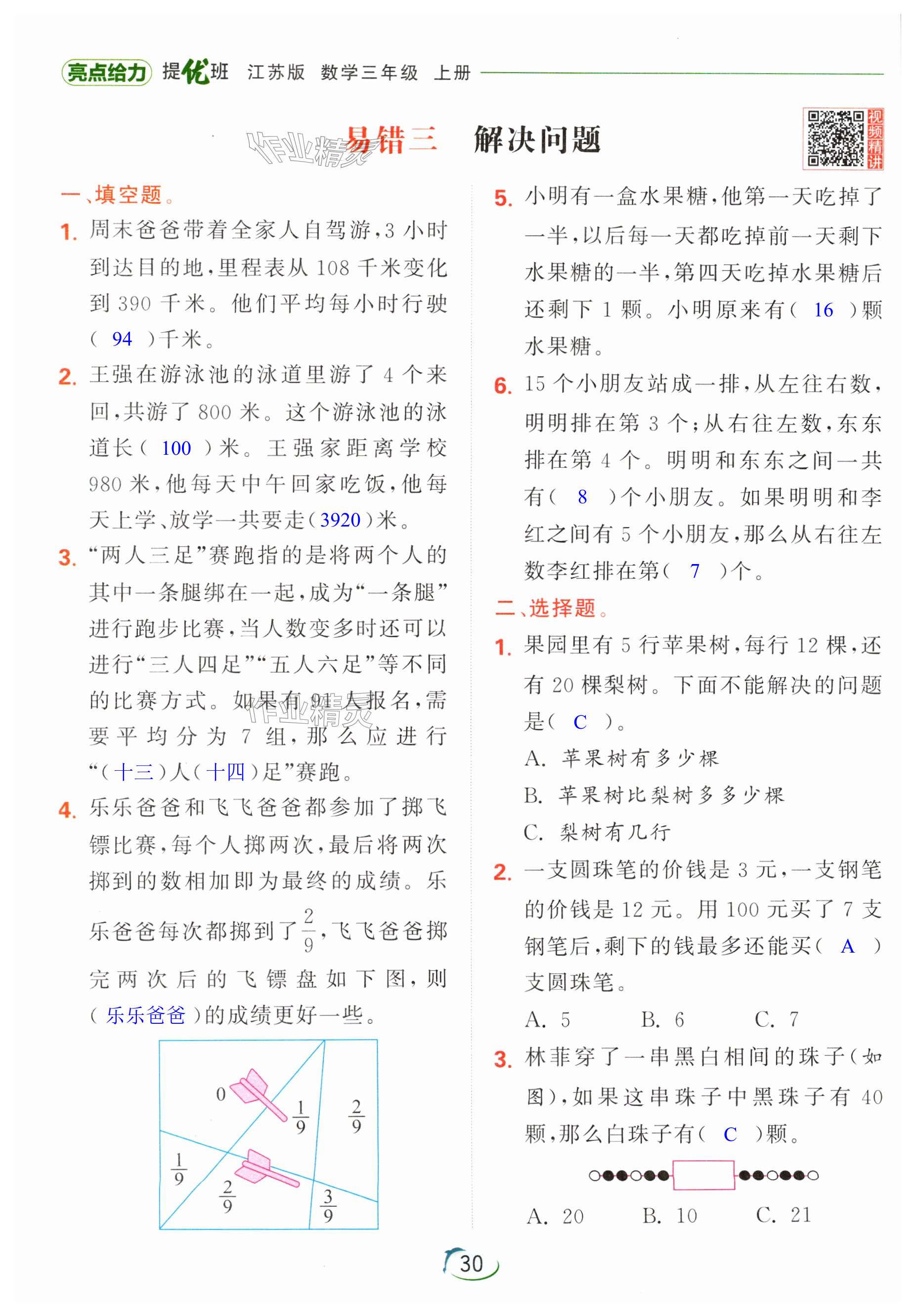 注:目前有些书本章节名称可能整理的还不是很完善,但都是按照顺序排列的,请同学们按照顺序仔细查找。练习册 2024年亮点给力提优班三年级数学上册苏教版 答案主要是用来给同学们做完题方便对答案用的,请勿直接抄袭。