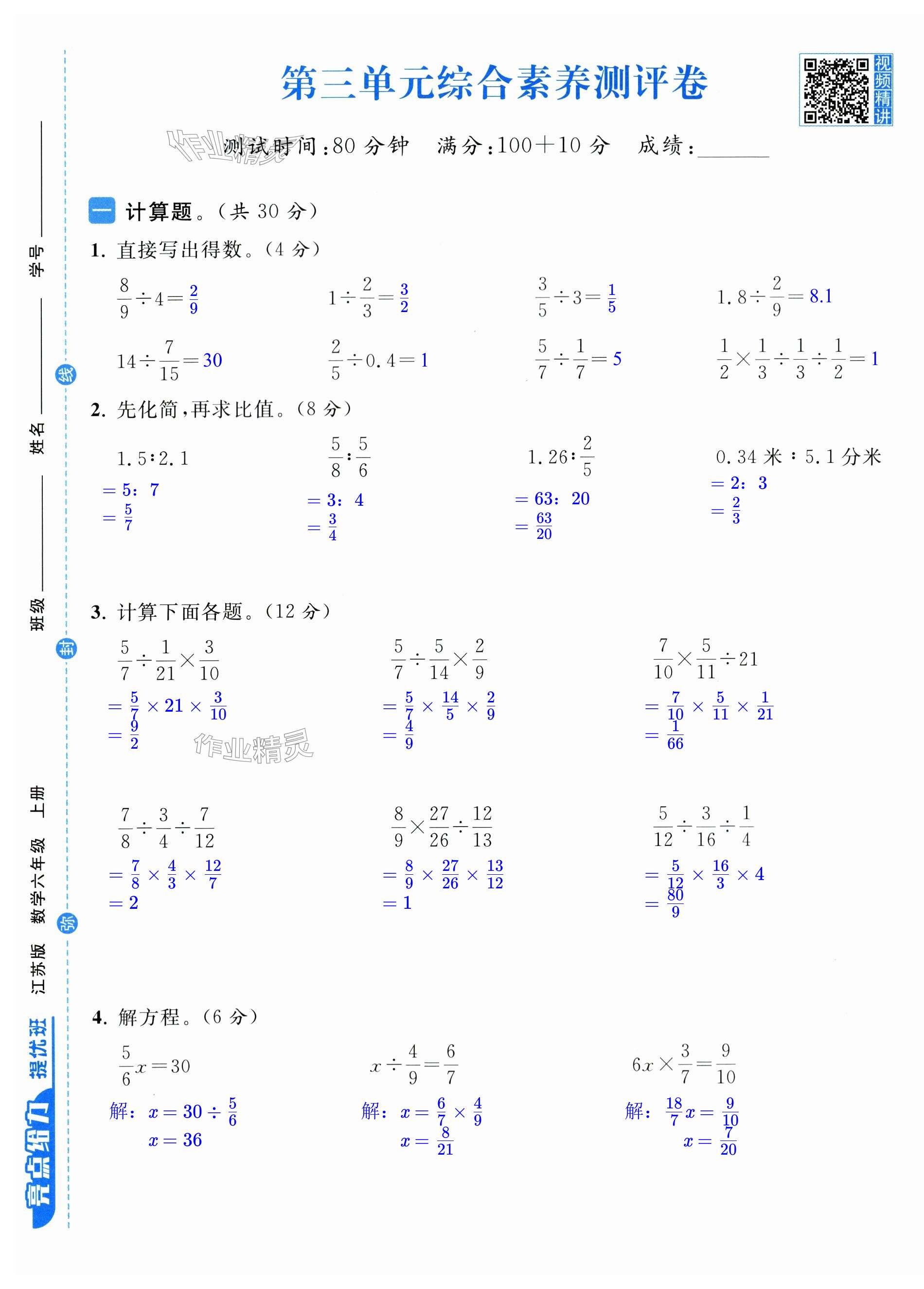 注:目前有些书本章节名称可能整理的还不是很完善,但都是按照顺序排列的,请同学们按照顺序仔细查找。练习册 2024年亮点给力提优班六年级数学上册苏教版 答案主要是用来给同学们做完题方便对答案用的,请勿直接抄袭。