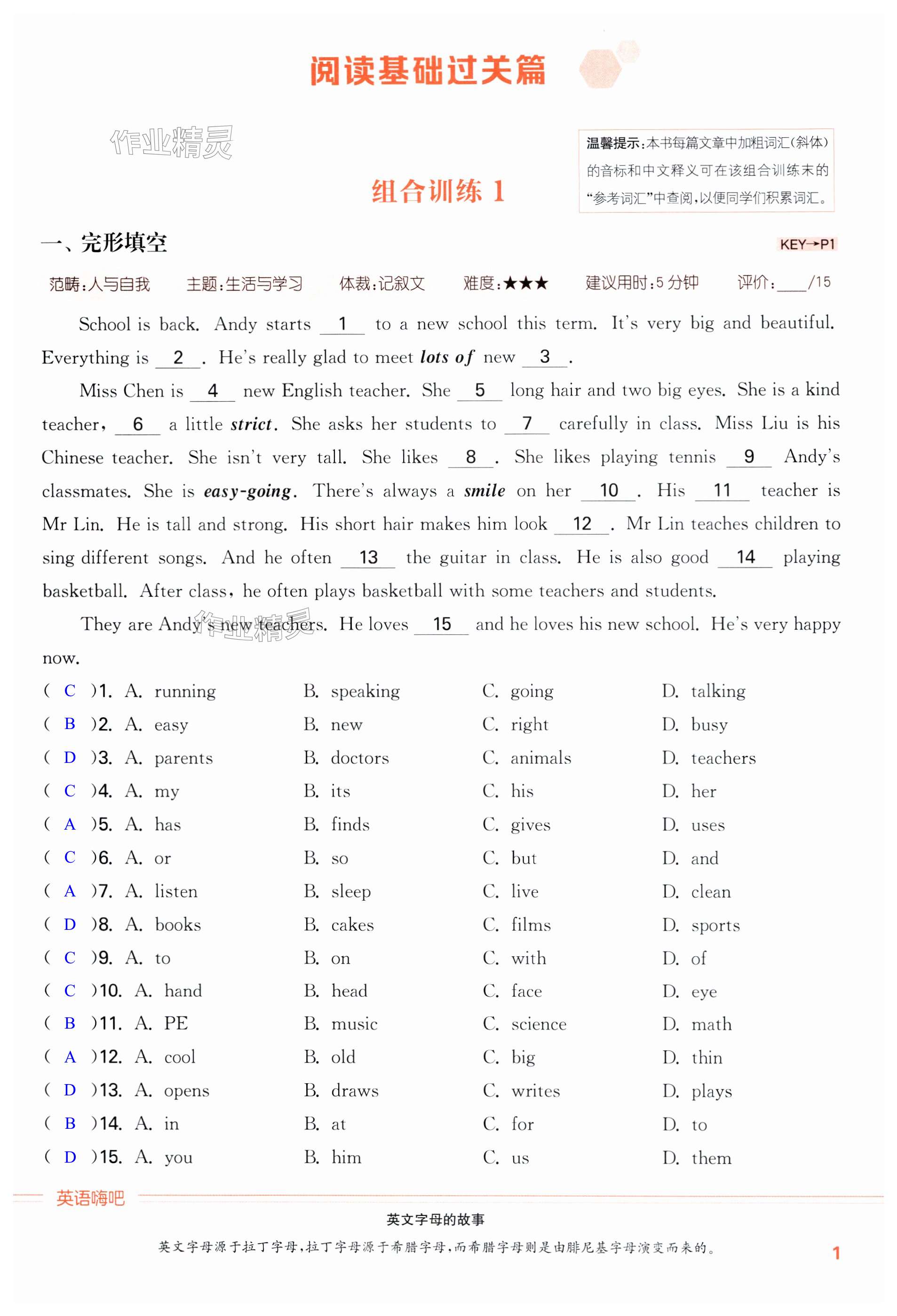 注:目前有些书本章节名称可能整理的还不是很完善,但都是按照顺序排列的,请同学们按照顺序仔细查找。练习册 2024年通城学典初中英语阅读组合训练七年级上册浙江专版 答案主要是用来给同学们做完题方便对答案用的,请勿直接抄袭。
