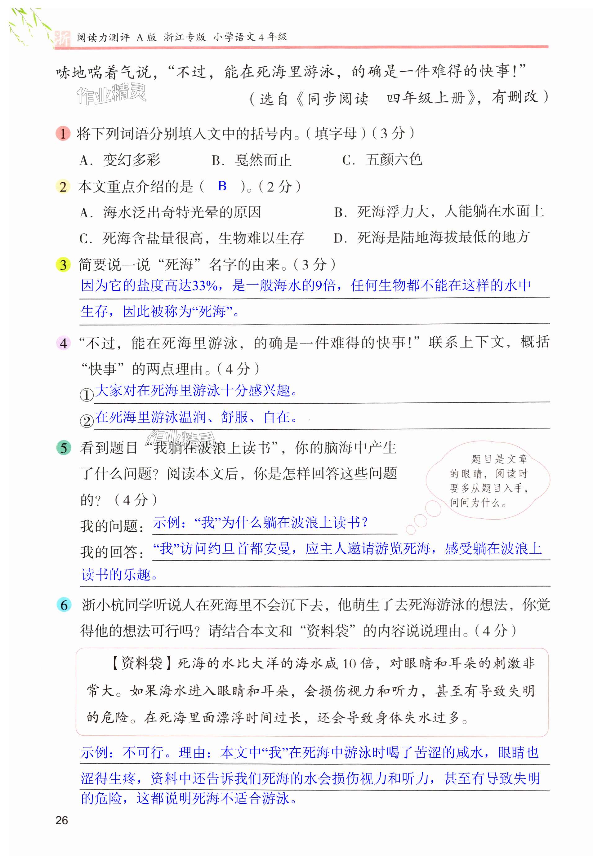 注:目前有些书本章节名称可能整理的还不是很完善,但都是按照顺序排列的,请同学们按照顺序仔细查找。练习册 2024年木头马阅读力测评四年级语文上册人教版浙江专版 答案主要是用来给同学们做完题方便对答案用的,请勿直接抄袭。
