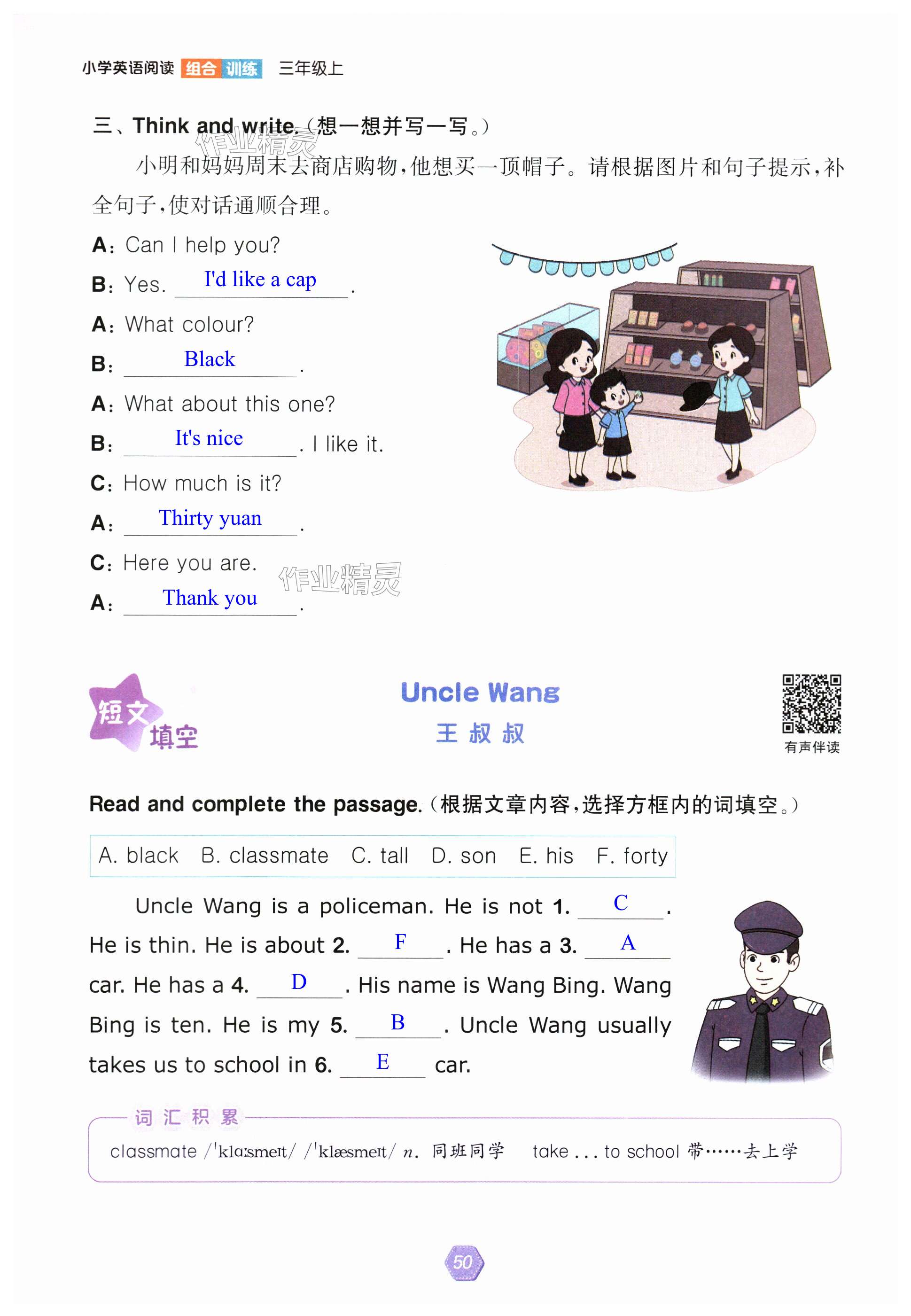 注:目前有些书本章节名称可能整理的还不是很完善,但都是按照顺序排列的,请同学们按照顺序仔细查找。练习册 2024年通城学典小学英语阅读组合训练三年级上册通用版 答案主要是用来给同学们做完题方便对答案用的,请勿直接抄袭。