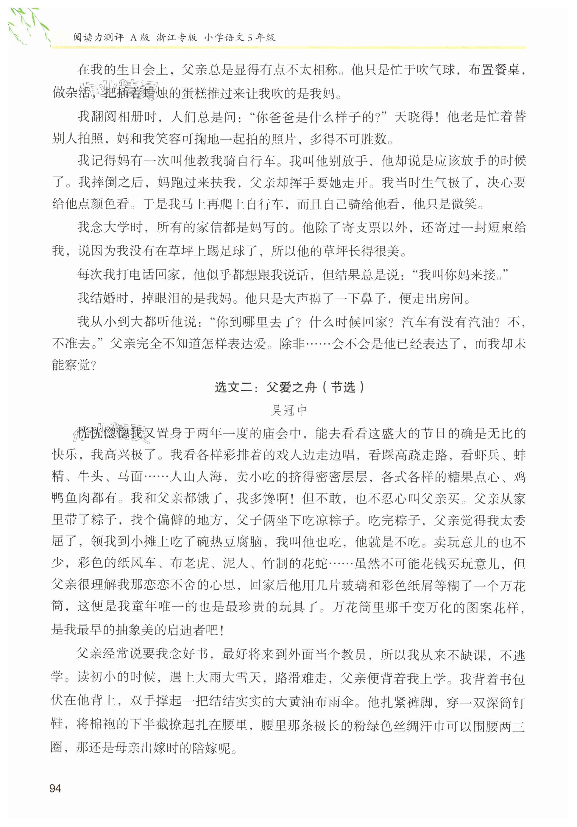 2024年木头马阅读力测评五年级语文上册人教版浙江专版