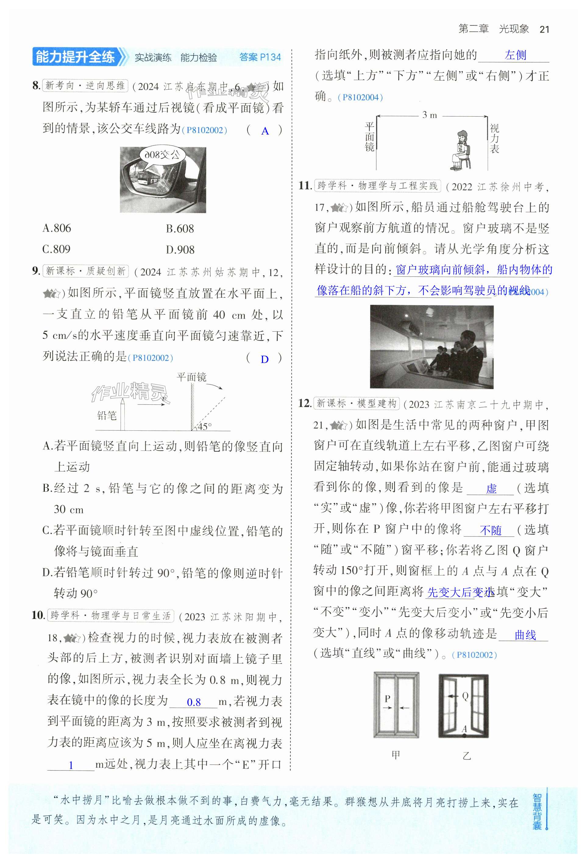 注:目前有些书本章节名称可能整理的还不是很完善,但都是按照顺序排列的,请同学们按照顺序仔细查找。练习册 2024年5年中考3年模拟八年级物理上册苏科版 答案主要是用来给同学们做完题方便对答案用的,请勿直接抄袭。
