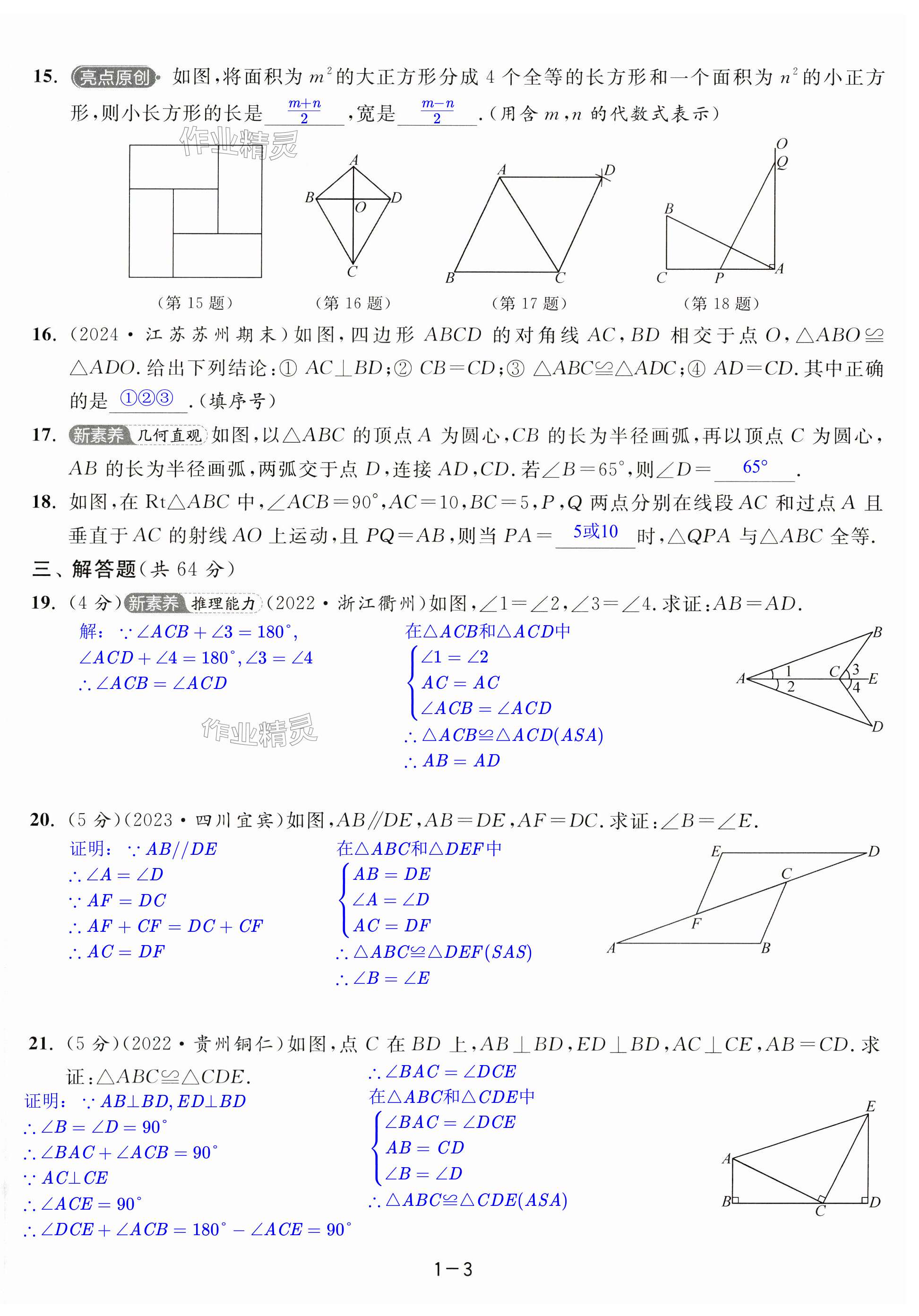 注:目前有些书本章节名称可能整理的还不是很完善,但都是按照顺序排列的,请同学们按照顺序仔细查找。练习册 2024年亮点给力大试卷八年级数学上册苏科版 答案主要是用来给同学们做完题方便对答案用的,请勿直接抄袭。