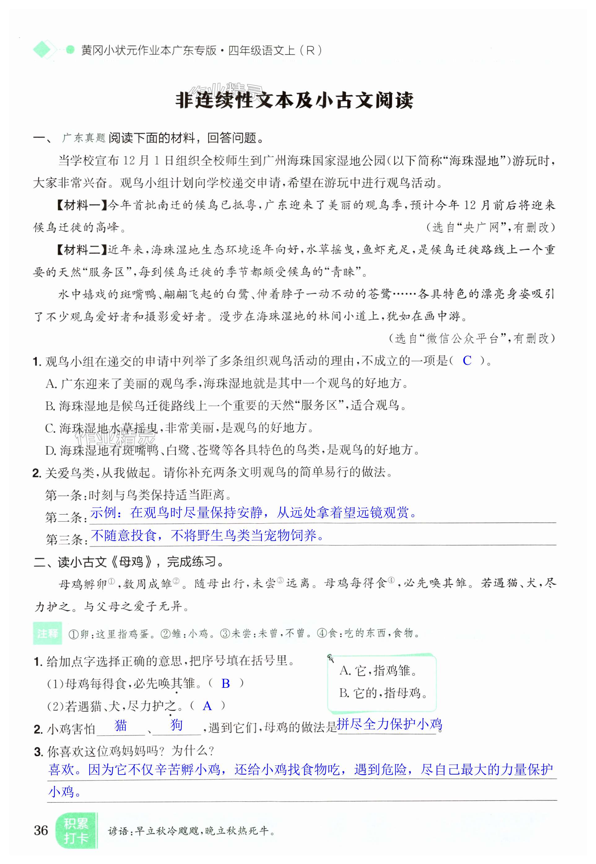 注:目前有些书本章节名称可能整理的还不是很完善,但都是按照顺序排列的,请同学们按照顺序仔细查找。练习册 2024年黄冈小状元作业本四年级语文上册人教版广东专版 答案主要是用来给同学们做完题方便对答案用的,请勿直接抄袭。