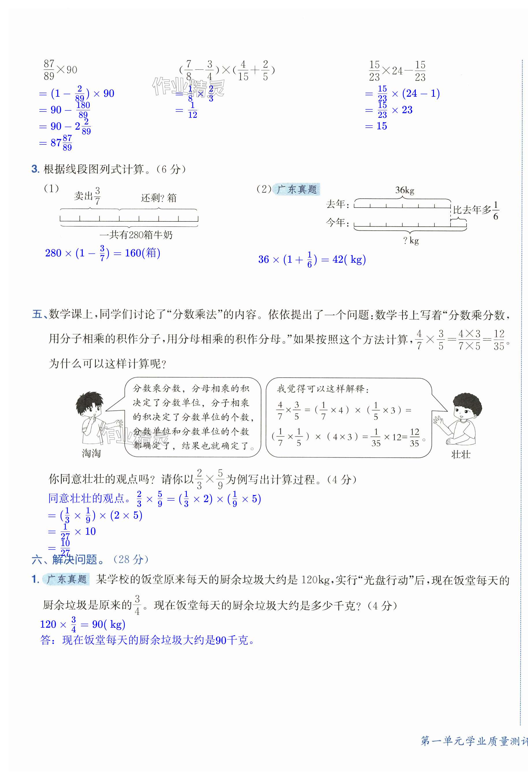 注:目前有些书本章节名称可能整理的还不是很完善,但都是按照顺序排列的,请同学们按照顺序仔细查找。练习册 2024年黄冈小状元作业本六年级数学上册人教版广东专版 答案主要是用来给同学们做完题方便对答案用的,请勿直接抄袭。