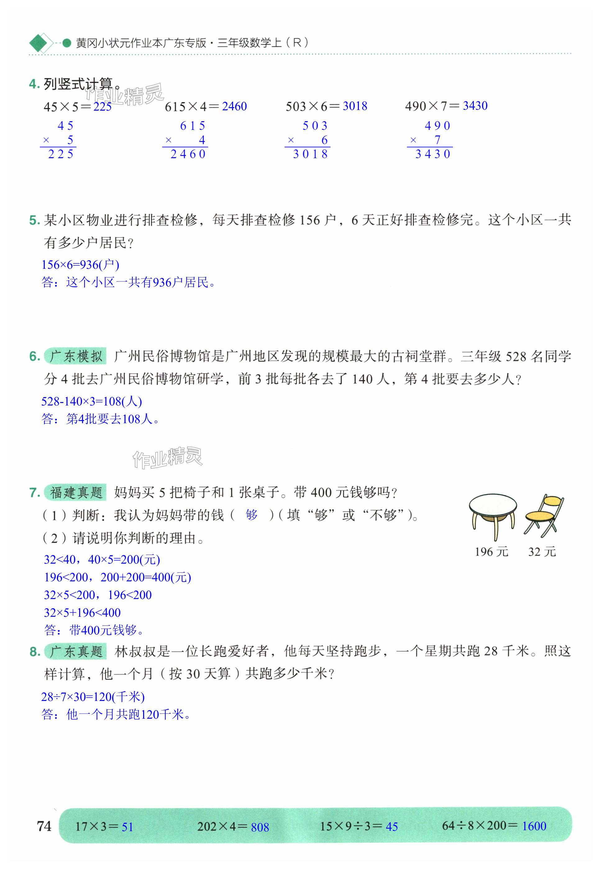 注:目前有些书本章节名称可能整理的还不是很完善,但都是按照顺序排列的,请同学们按照顺序仔细查找。练习册 2024年黄冈小状元作业本三年级数学上册人教版广东专版 答案主要是用来给同学们做完题方便对答案用的,请勿直接抄袭。
