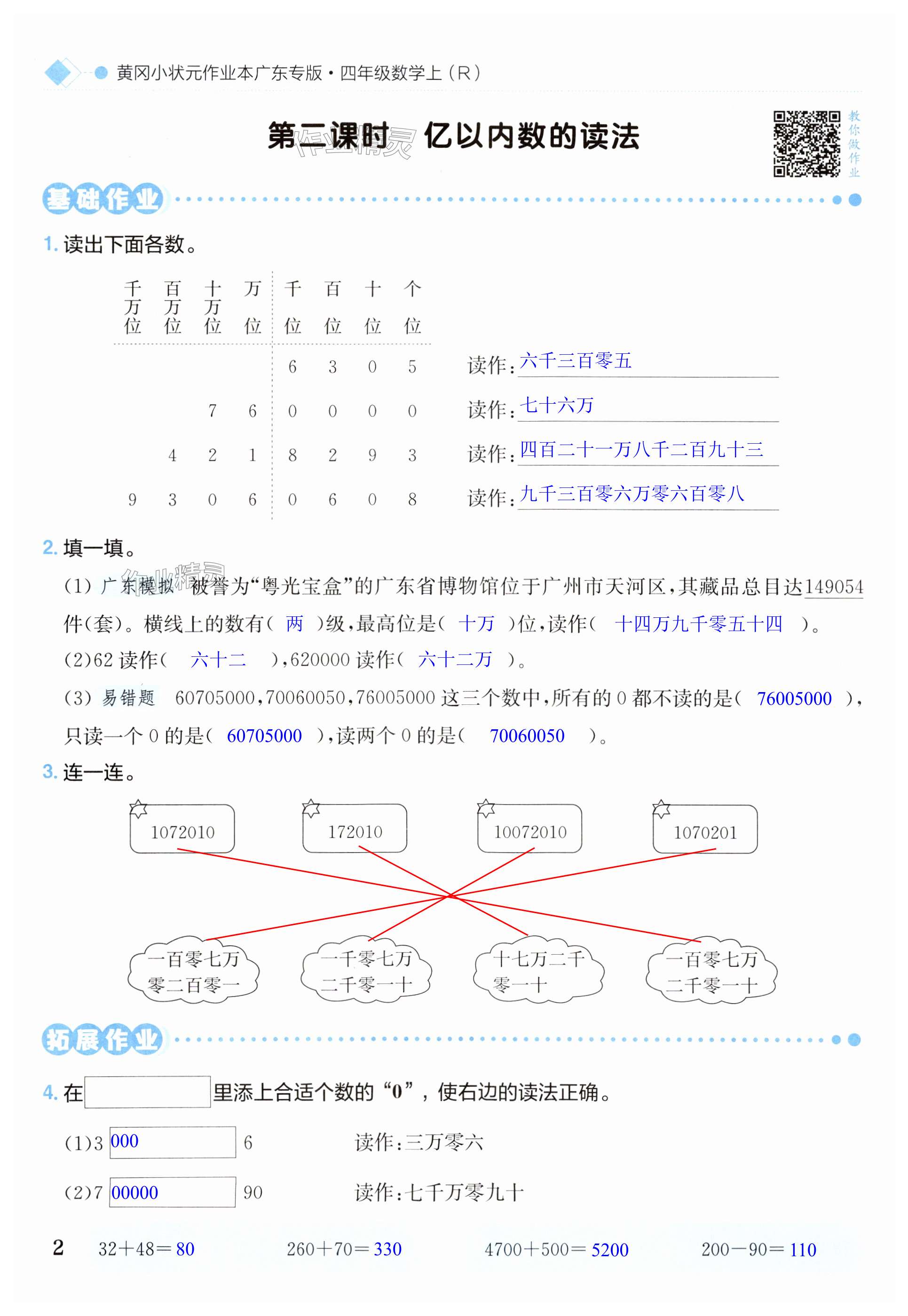 注:目前有些书本章节名称可能整理的还不是很完善,但都是按照顺序排列的,请同学们按照顺序仔细查找。练习册 2024年黄冈小状元作业本四年级数学上册人教版广东专版 答案主要是用来给同学们做完题方便对答案用的,请勿直接抄袭。