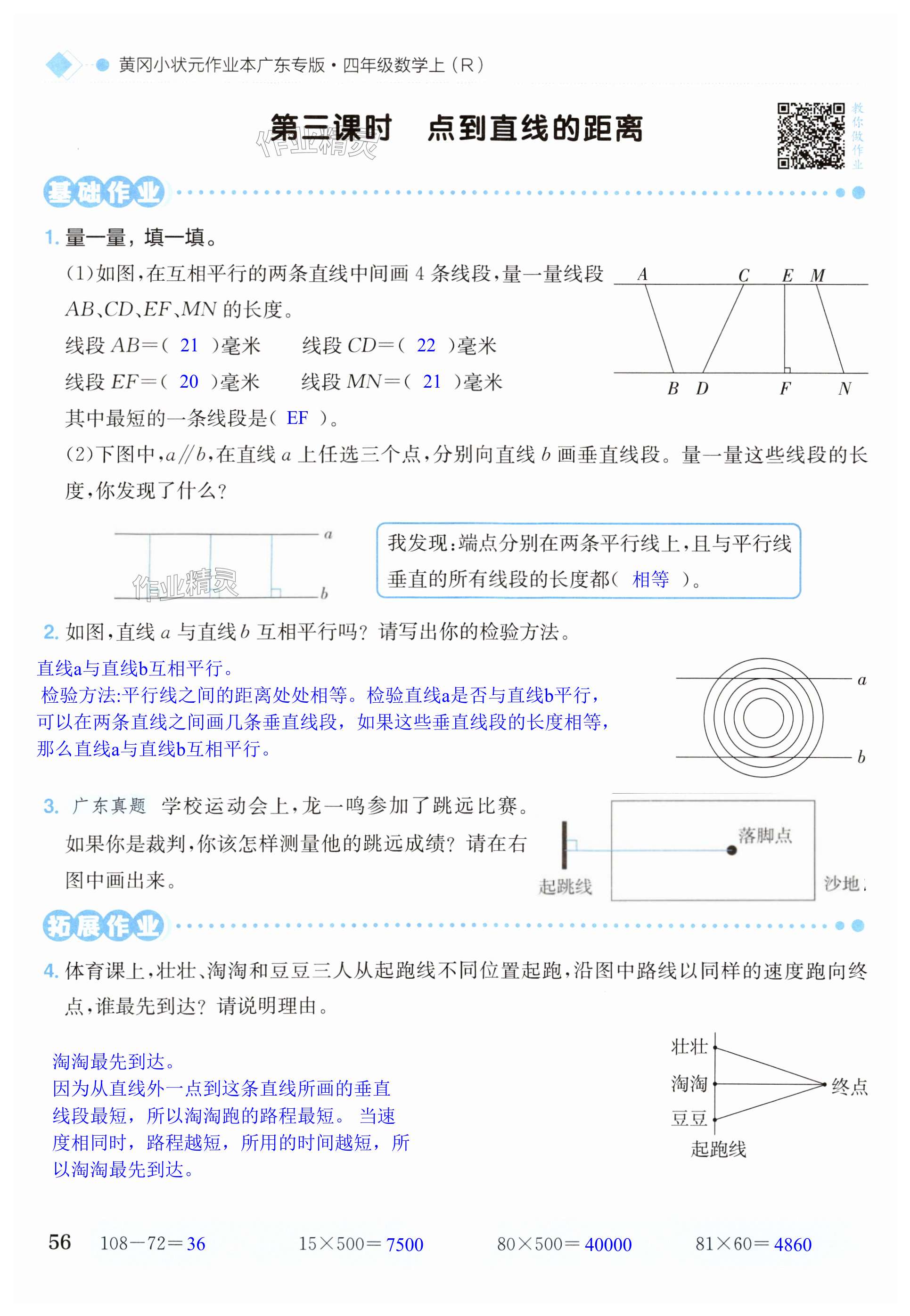 2024年黄冈小状元作业本四年级数学上册人教版广东专版