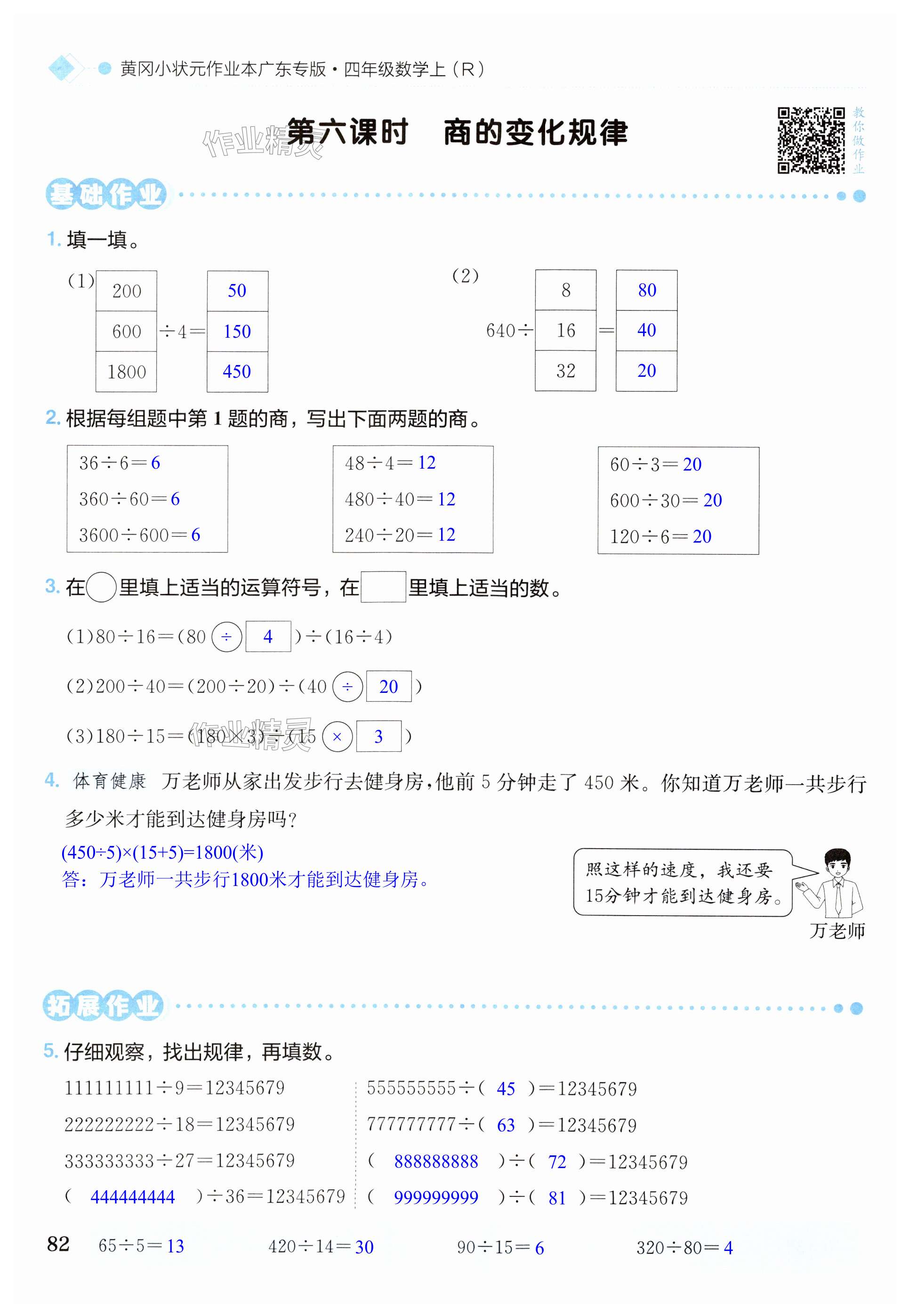 《2024年黄冈小状元作业本四年级数学上册人教版广东专版》