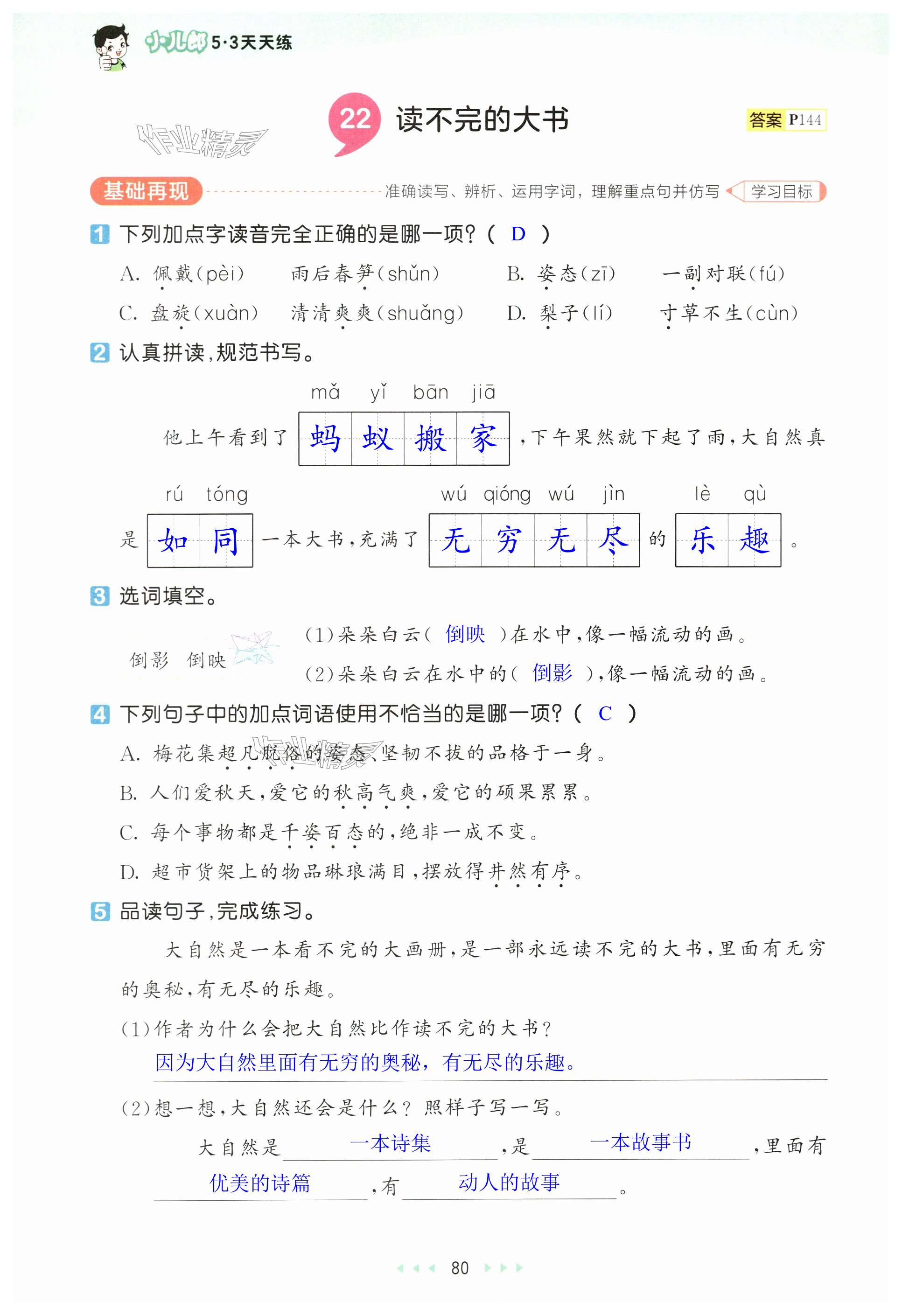 注:目前有些书本章节名称可能整理的还不是很完善,但都是按照顺序排列的,请同学们按照顺序仔细查找。练习册 2024年53天天练三年级语文上册人教版 答案主要是用来给同学们做完题方便对答案用的,请勿直接抄袭。