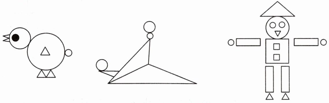 9. 下面各图形像什么?由哪些图形组成?这些图形各有多少个?