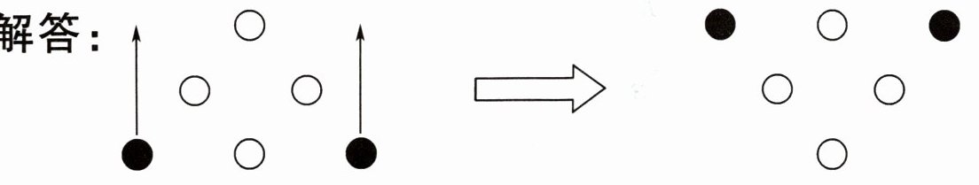 点拨:原来三角形圆的个数从上到下分别是1个、2个、3个,颠倒过来以后,从上到下分别是3个、2个、1个。中间一行可以不变,把第一行和第三行交换一下就可以了。也就是把第三行的两个圆移到第一行就可以了。