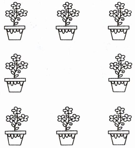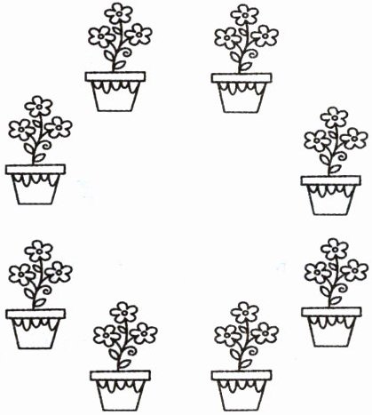 点拨:要求每条边有3盆花,$3 + 3 + 3 + 3 = 12$(盆),而这里只有8盆,所以有的花要移动到正方形的角上,这样这盆花既属于这条边,又属于另一条边。
