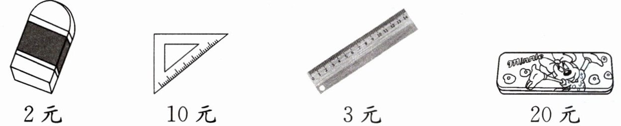 解析:本题考查加减法在实际生活中的应用,关键在于找出最便宜和最贵的两种文具组合,通过计算其价格来确定找回钱数的最大值和最小值。