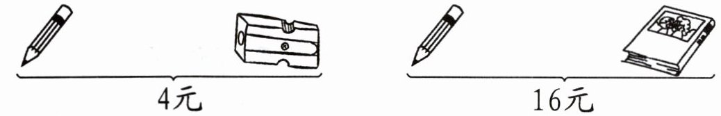 观察图片可知,一支铅笔和一个卷笔刀一共$4$元,一支铅笔和一本童话书一共$16$元。