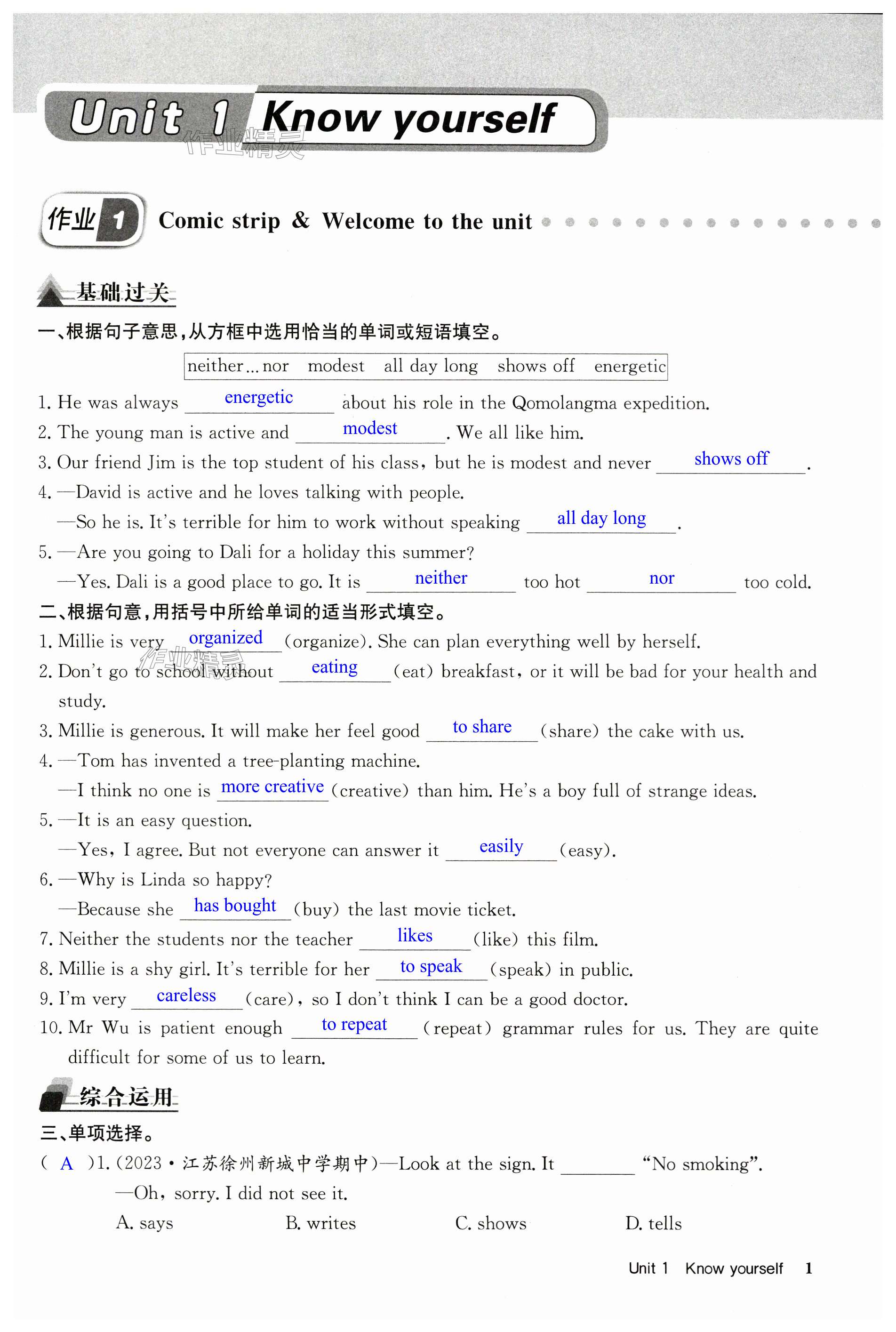 注:目前有些书本章节名称可能整理的还不是很完善,但都是按照顺序排列的,请同学们按照顺序仔细查找。练习册 2024年启东中学作业本九年级英语上册译林版淮安专版 答案主要是用来给同学们做完题方便对答案用的,请勿直接抄袭。