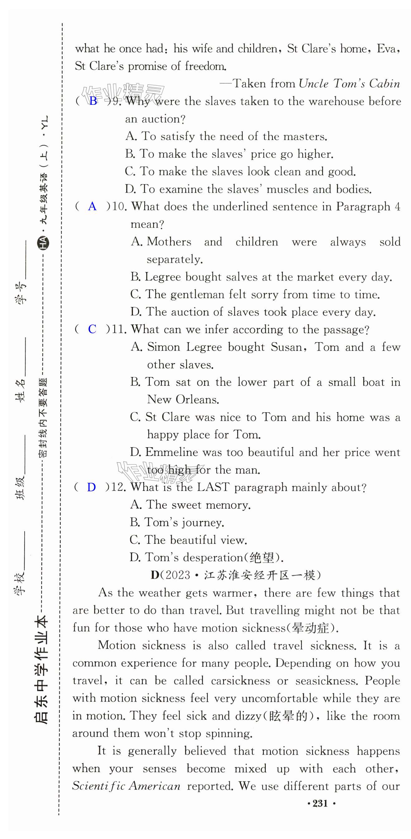 注:目前有些书本章节名称可能整理的还不是很完善,但都是按照顺序排列的,请同学们按照顺序仔细查找。练习册 2024年启东中学作业本九年级英语上册译林版淮安专版 答案主要是用来给同学们做完题方便对答案用的,请勿直接抄袭。