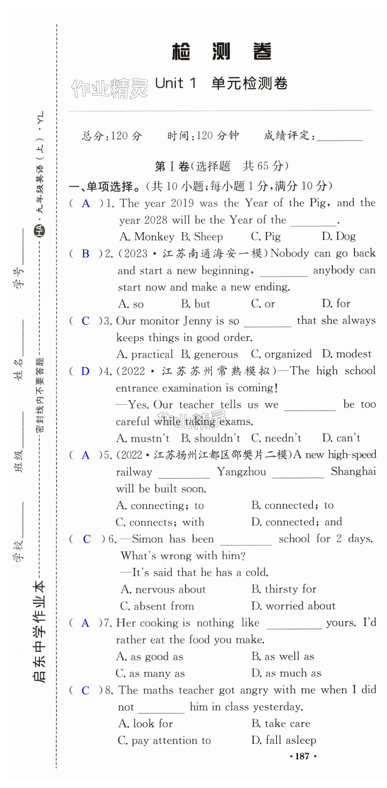 注:目前有些书本章节名称可能整理的还不是很完善,但都是按照顺序排列的,请同学们按照顺序仔细查找。练习册 2024年启东中学作业本九年级英语上册译林版淮安专版 答案主要是用来给同学们做完题方便对答案用的,请勿直接抄袭。