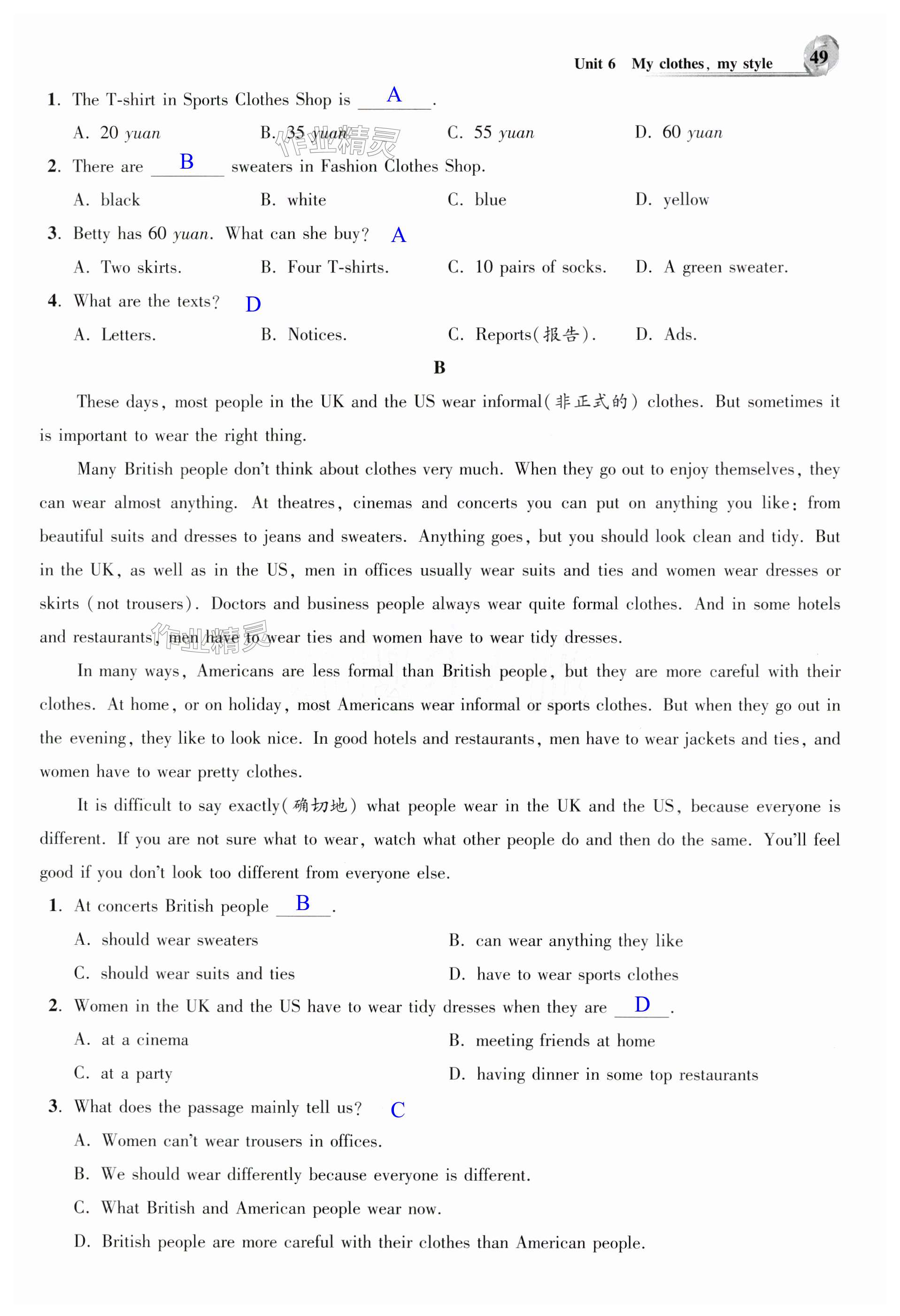 注:目前有些书本章节名称可能整理的还不是很完善,但都是按照顺序排列的,请同学们按照顺序仔细查找。练习册 2024年小题狂做七年级英语上册译林版巅峰版 答案主要是用来给同学们做完题方便对答案用的,请勿直接抄袭。