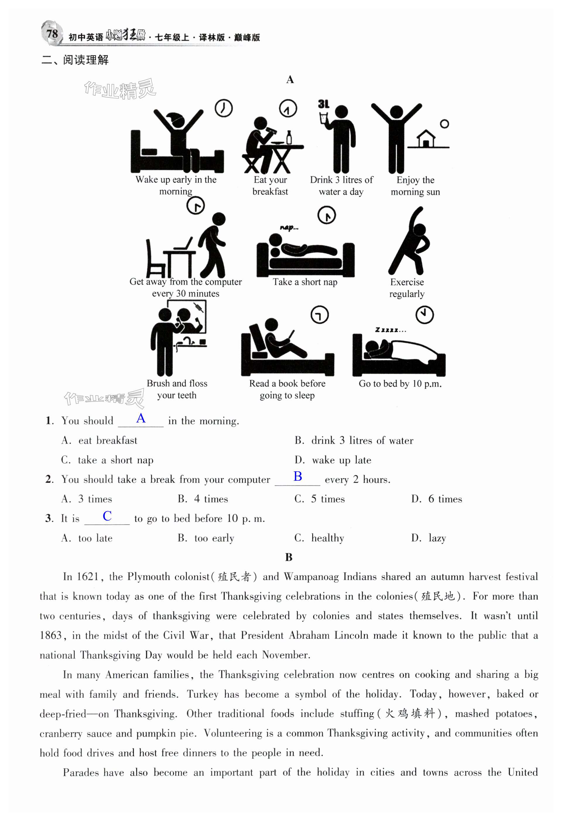 注:目前有些书本章节名称可能整理的还不是很完善,但都是按照顺序排列的,请同学们按照顺序仔细查找。练习册 2024年小题狂做七年级英语上册译林版巅峰版 答案主要是用来给同学们做完题方便对答案用的,请勿直接抄袭。