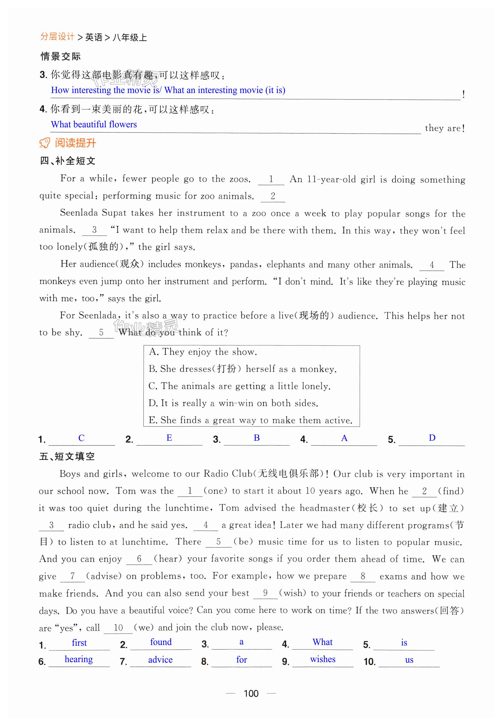 注:目前有些书本章节名称可能整理的还不是很完善,但都是按照顺序排列的,请同学们按照顺序仔细查找。练习册 2024年阳光同学分层设计八年级英语上册人教版福建专版 答案主要是用来给同学们做完题方便对答案用的,请勿直接抄袭。