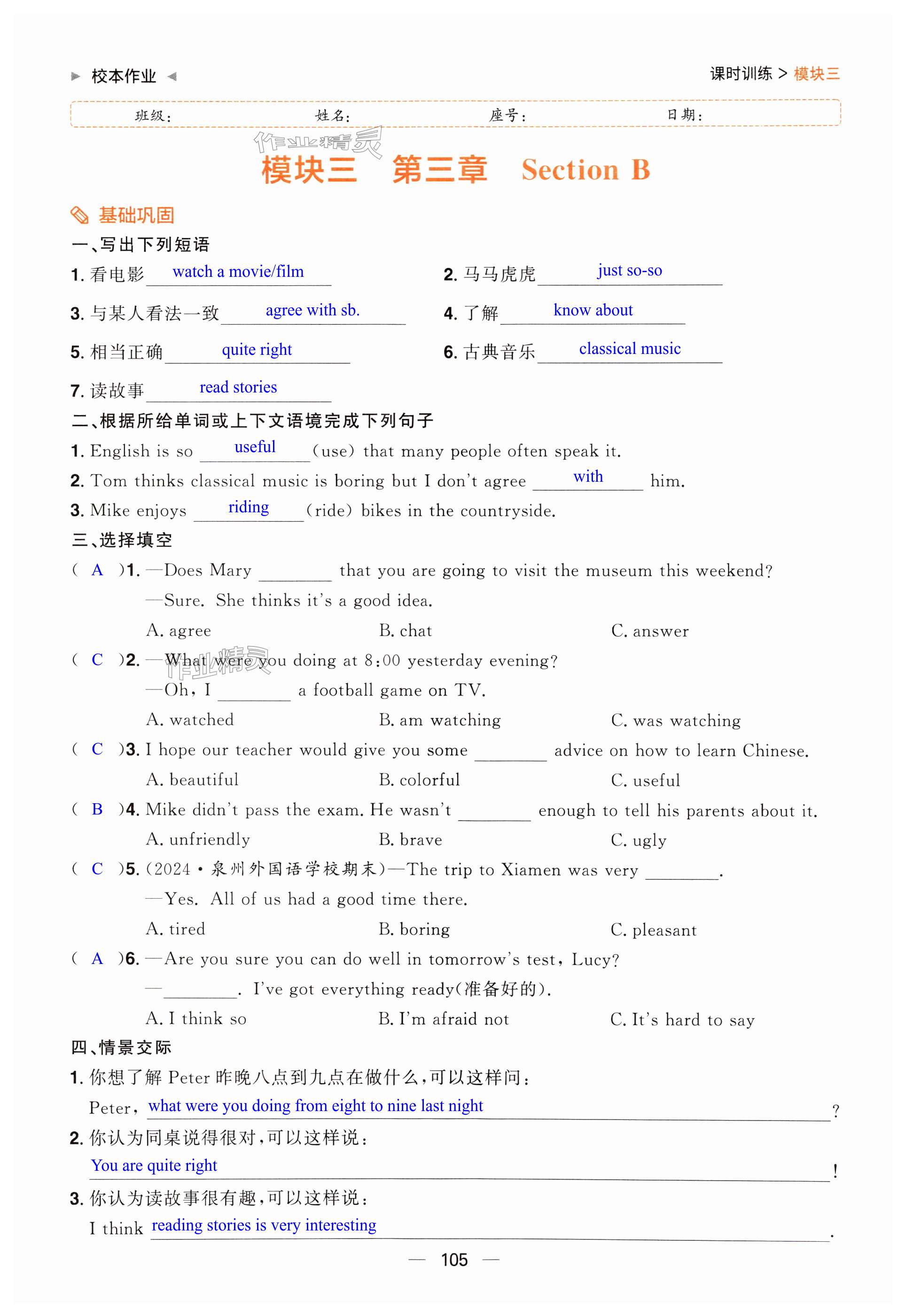注:目前有些书本章节名称可能整理的还不是很完善,但都是按照顺序排列的,请同学们按照顺序仔细查找。练习册 2024年阳光同学分层设计八年级英语上册人教版福建专版 答案主要是用来给同学们做完题方便对答案用的,请勿直接抄袭。