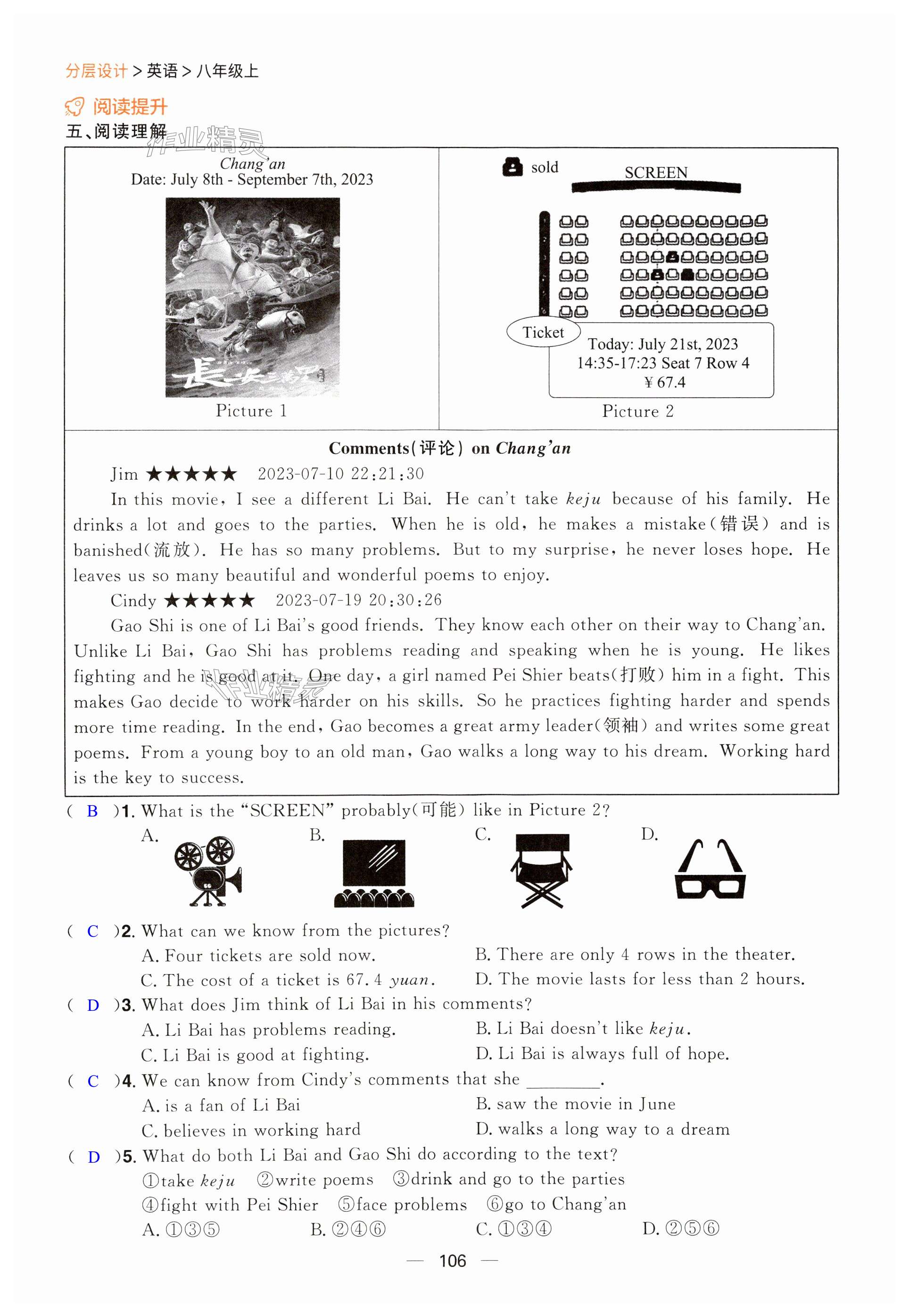 注:目前有些书本章节名称可能整理的还不是很完善,但都是按照顺序排列的,请同学们按照顺序仔细查找。练习册 2024年阳光同学分层设计八年级英语上册人教版福建专版 答案主要是用来给同学们做完题方便对答案用的,请勿直接抄袭。