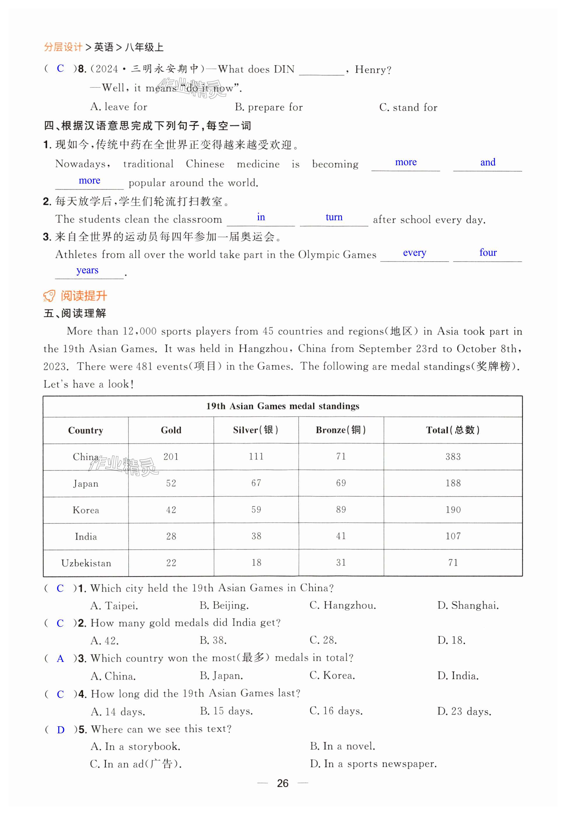 注:目前有些书本章节名称可能整理的还不是很完善,但都是按照顺序排列的,请同学们按照顺序仔细查找。练习册 2024年阳光同学分层设计八年级英语上册人教版福建专版 答案主要是用来给同学们做完题方便对答案用的,请勿直接抄袭。
