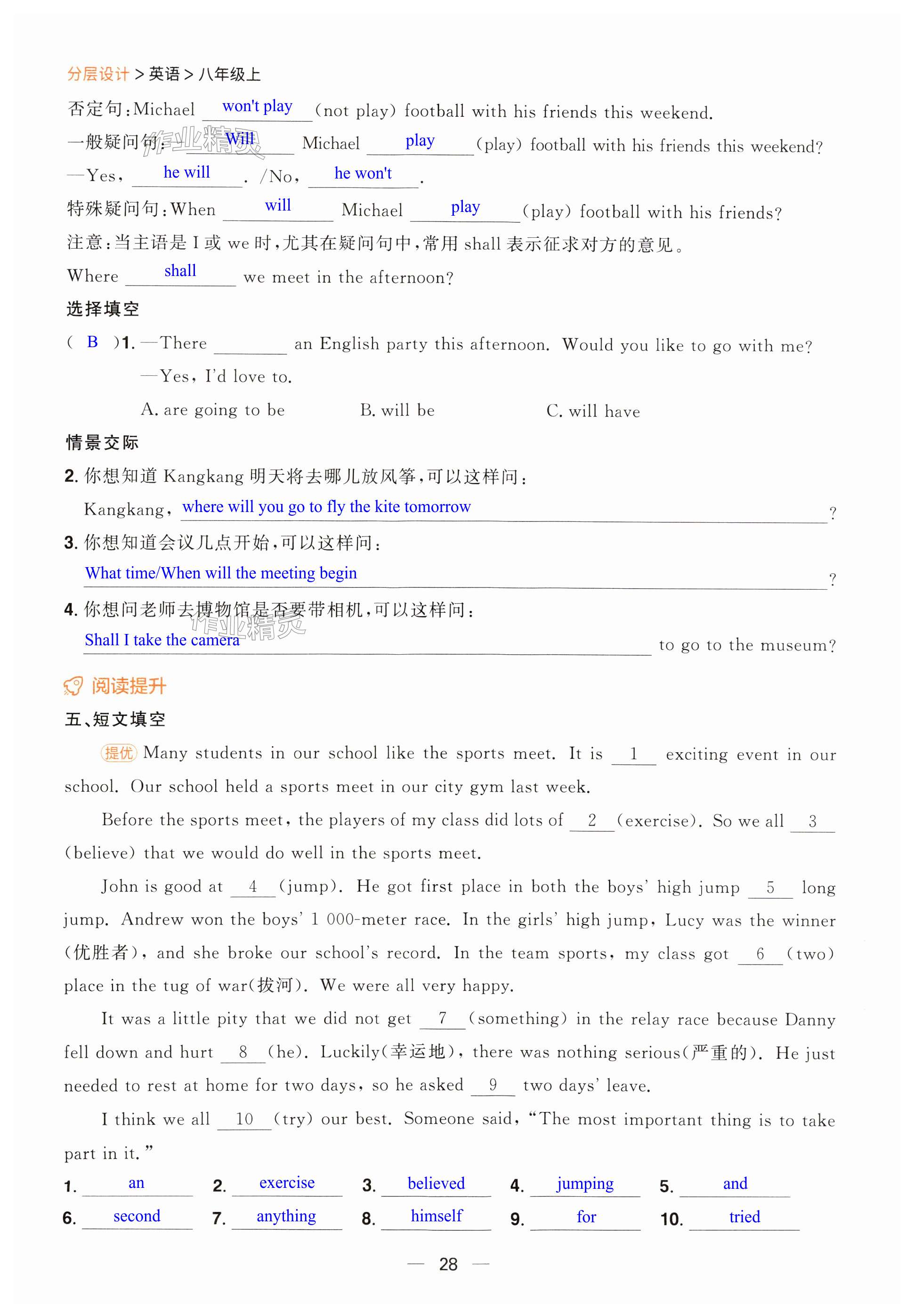 注:目前有些书本章节名称可能整理的还不是很完善,但都是按照顺序排列的,请同学们按照顺序仔细查找。练习册 2024年阳光同学分层设计八年级英语上册人教版福建专版 答案主要是用来给同学们做完题方便对答案用的,请勿直接抄袭。