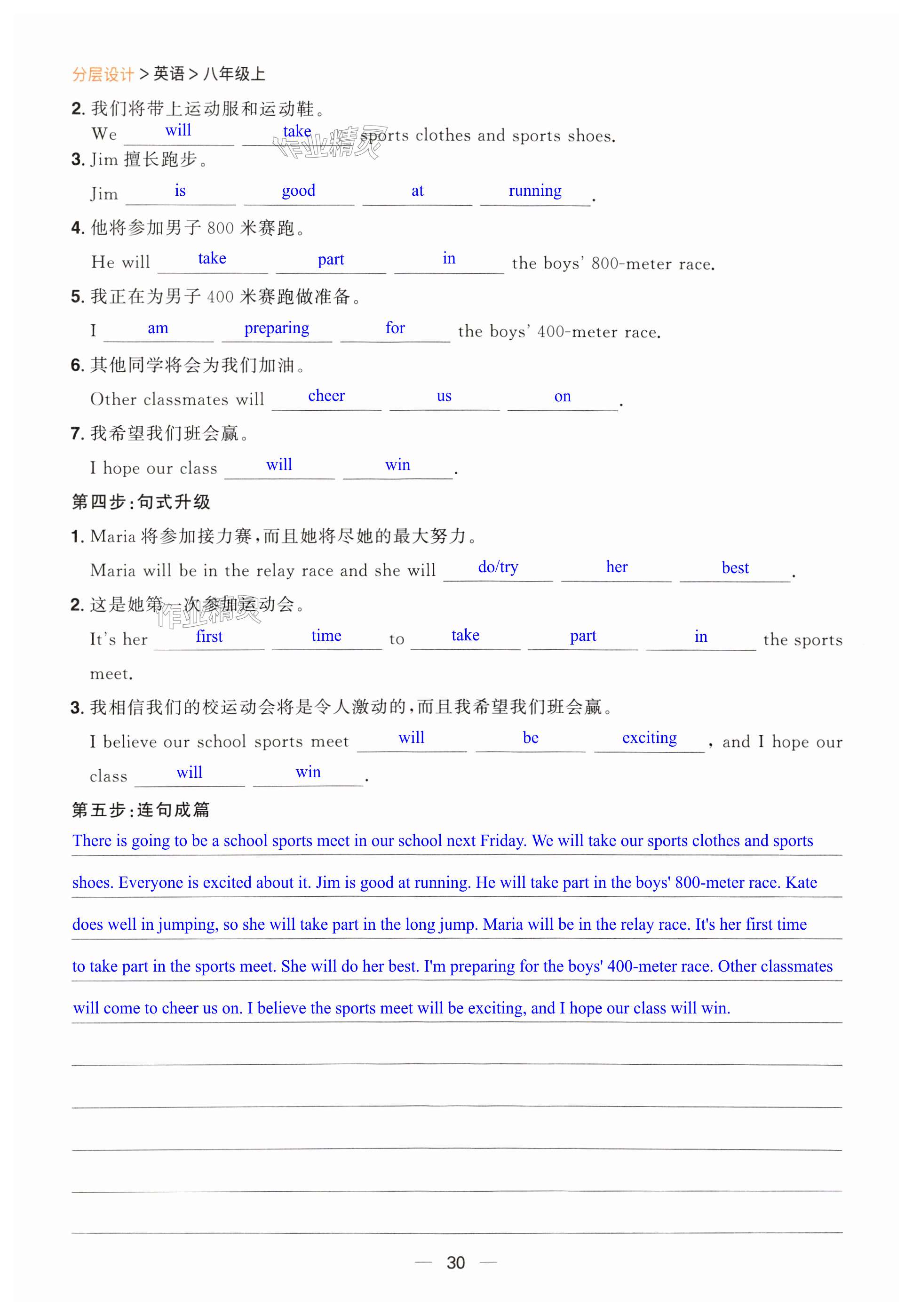 注:目前有些书本章节名称可能整理的还不是很完善,但都是按照顺序排列的,请同学们按照顺序仔细查找。练习册 2024年阳光同学分层设计八年级英语上册人教版福建专版 答案主要是用来给同学们做完题方便对答案用的,请勿直接抄袭。