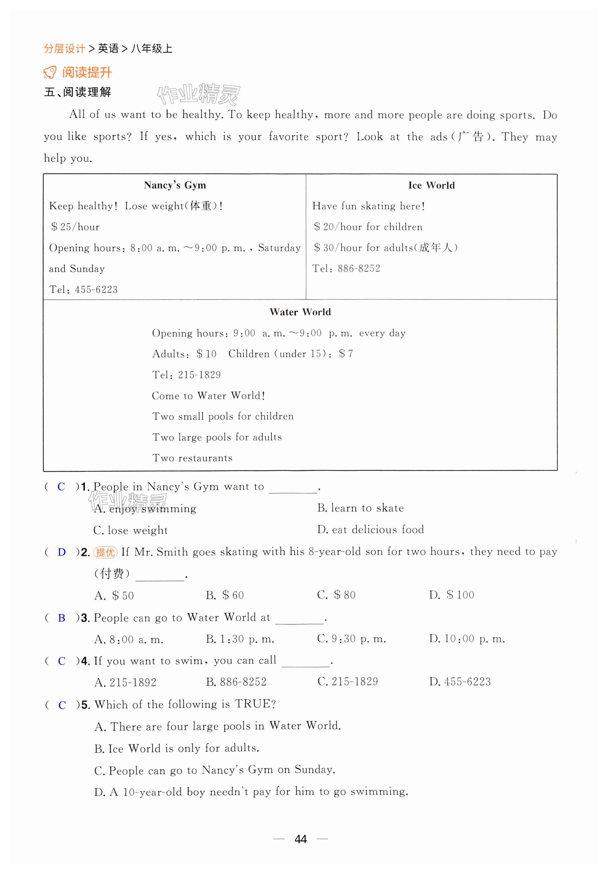 注:目前有些书本章节名称可能整理的还不是很完善,但都是按照顺序排列的,请同学们按照顺序仔细查找。练习册 2024年阳光同学分层设计八年级英语上册人教版福建专版 答案主要是用来给同学们做完题方便对答案用的,请勿直接抄袭。