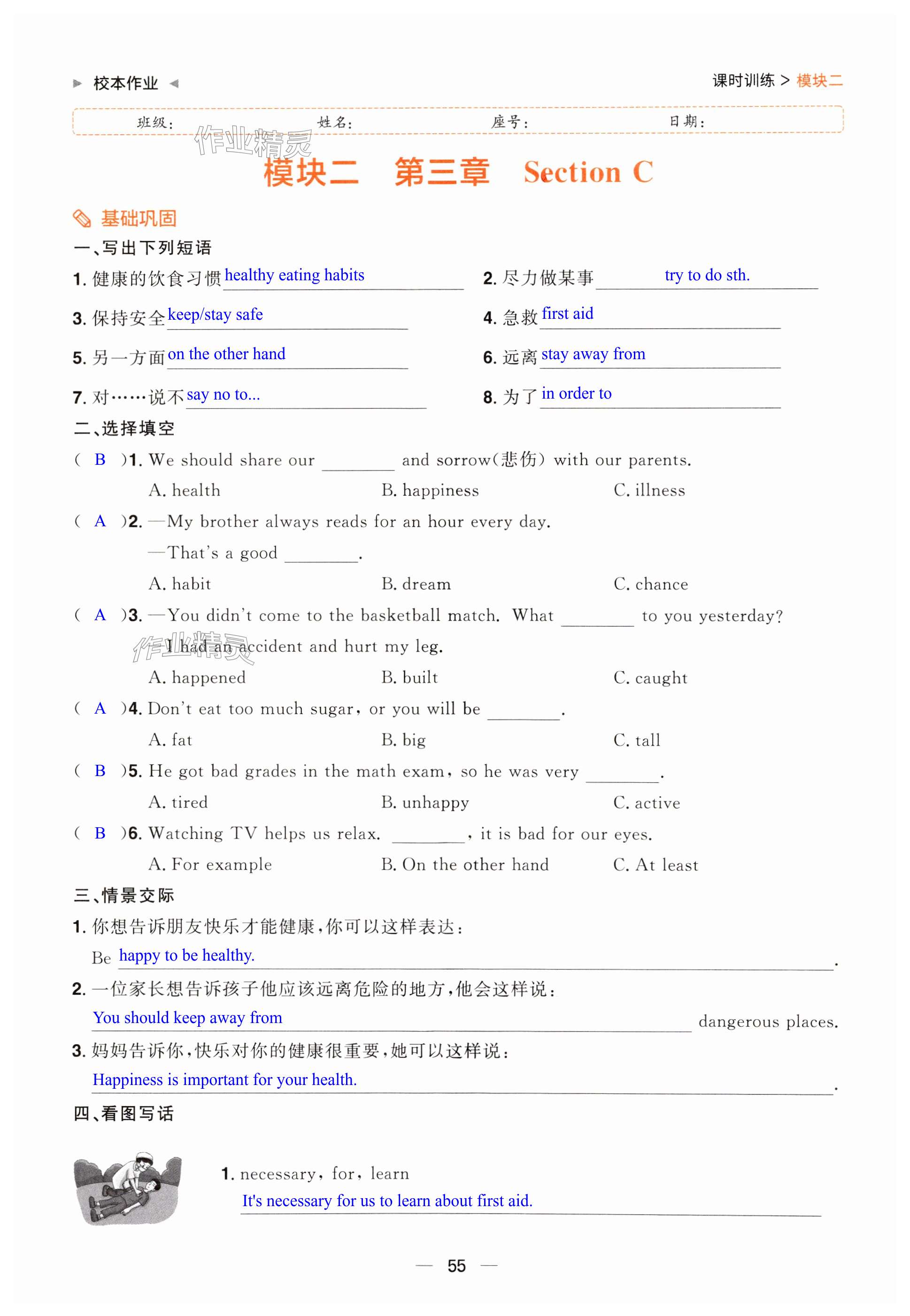 注:目前有些书本章节名称可能整理的还不是很完善,但都是按照顺序排列的,请同学们按照顺序仔细查找。练习册 2024年阳光同学分层设计八年级英语上册人教版福建专版 答案主要是用来给同学们做完题方便对答案用的,请勿直接抄袭。