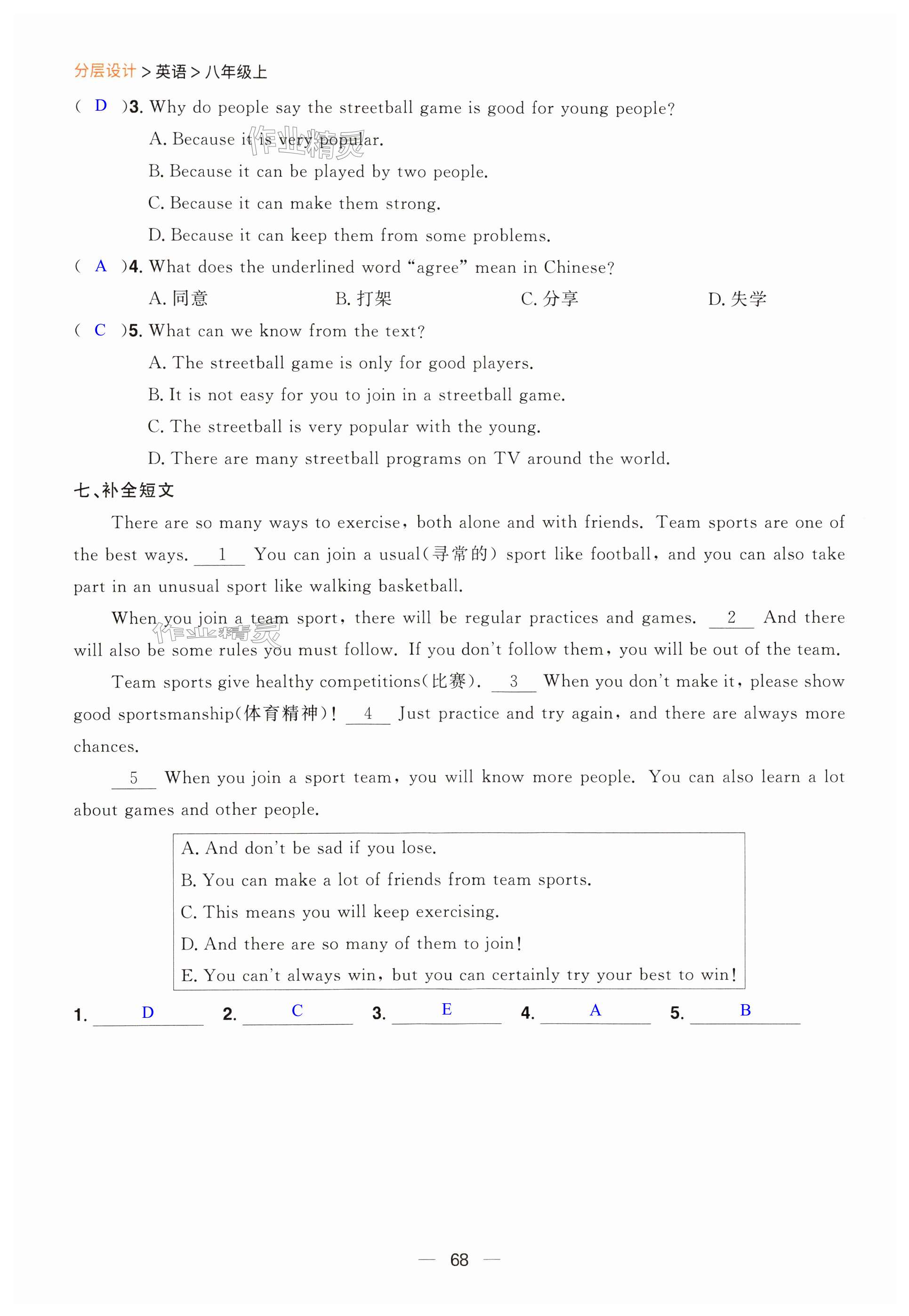 注:目前有些书本章节名称可能整理的还不是很完善,但都是按照顺序排列的,请同学们按照顺序仔细查找。练习册 2024年阳光同学分层设计八年级英语上册人教版福建专版 答案主要是用来给同学们做完题方便对答案用的,请勿直接抄袭。