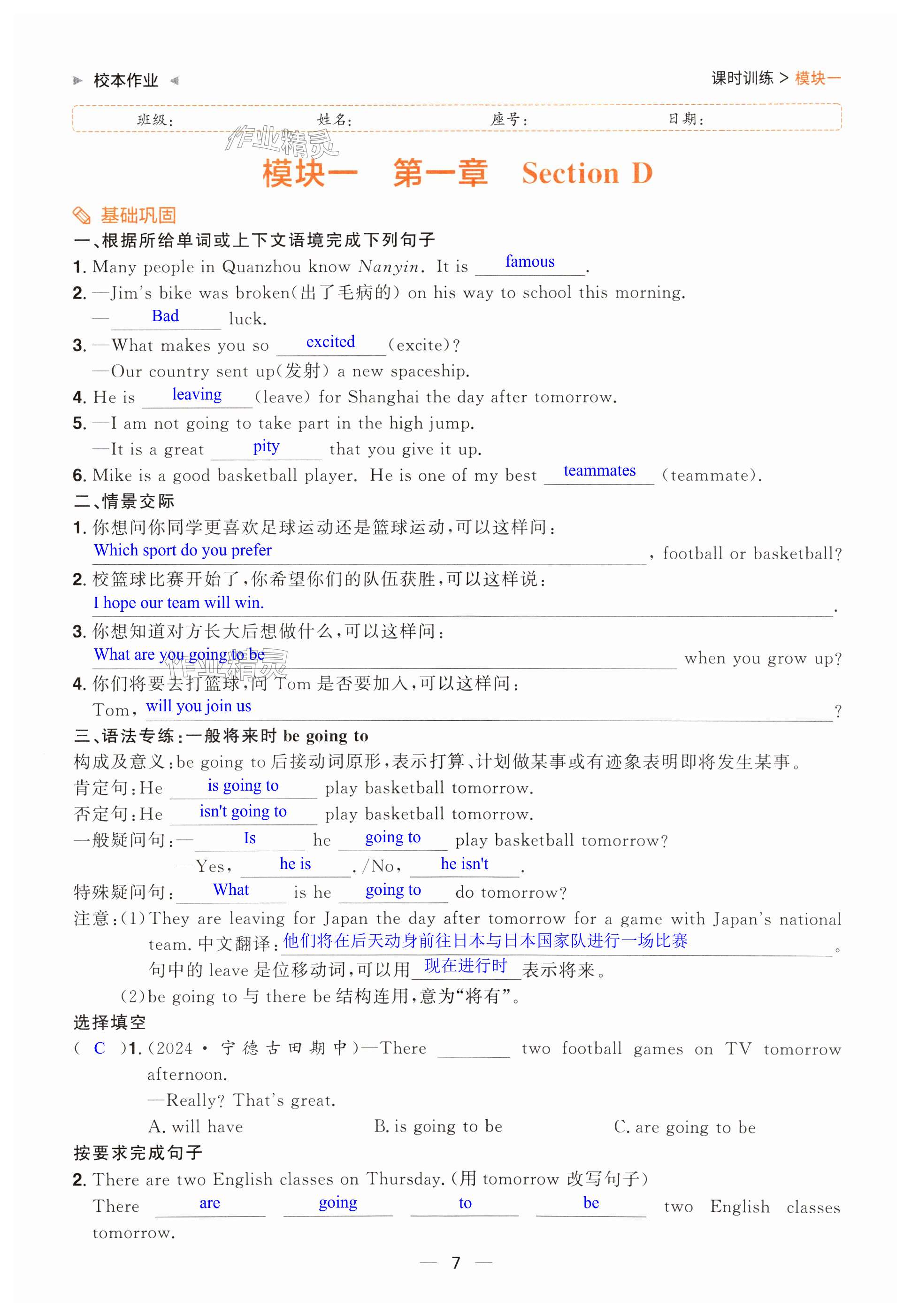 注:目前有些书本章节名称可能整理的还不是很完善,但都是按照顺序排列的,请同学们按照顺序仔细查找。练习册 2024年阳光同学分层设计八年级英语上册人教版福建专版 答案主要是用来给同学们做完题方便对答案用的,请勿直接抄袭。