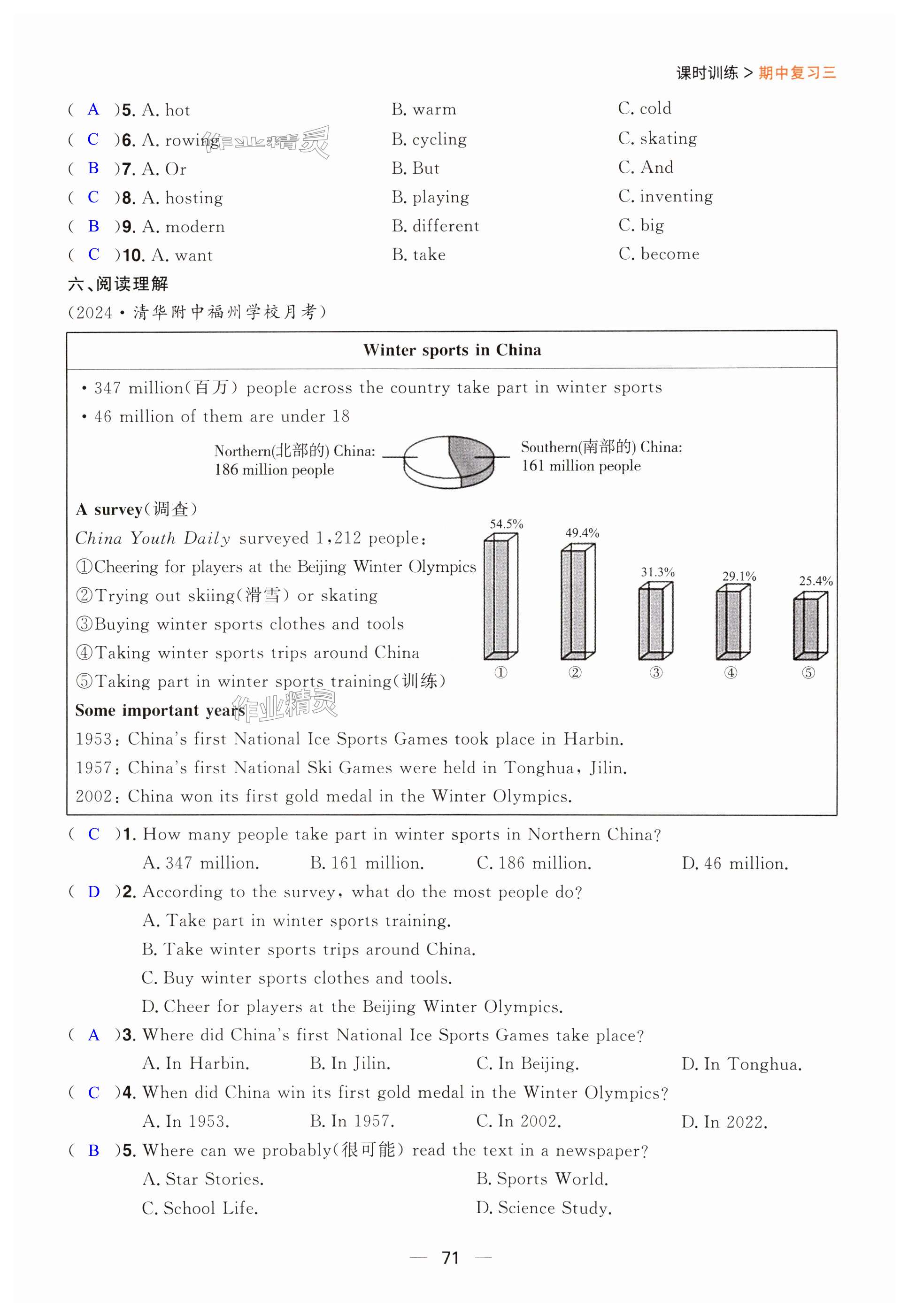 注:目前有些书本章节名称可能整理的还不是很完善,但都是按照顺序排列的,请同学们按照顺序仔细查找。练习册 2024年阳光同学分层设计八年级英语上册人教版福建专版 答案主要是用来给同学们做完题方便对答案用的,请勿直接抄袭。