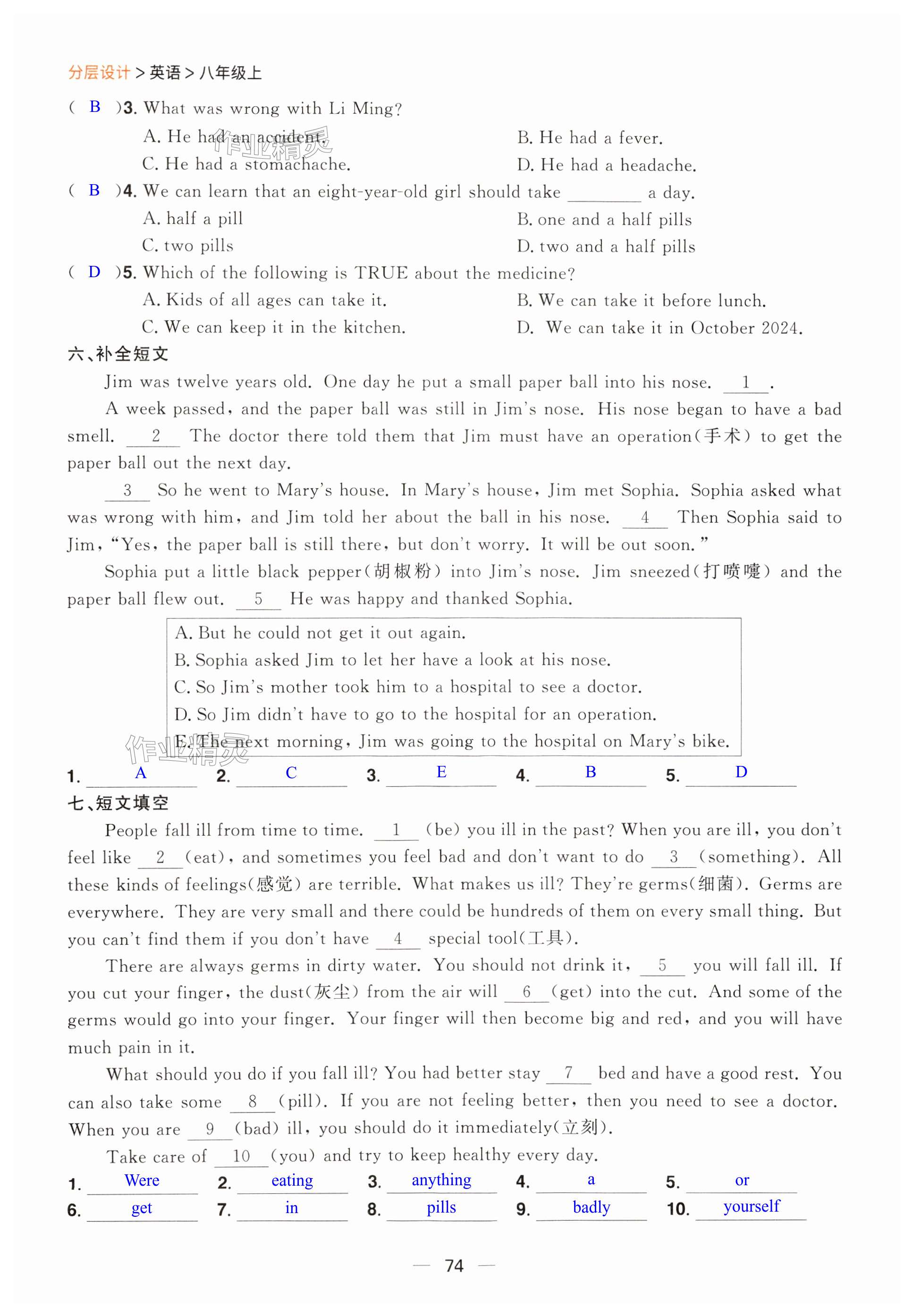 注:目前有些书本章节名称可能整理的还不是很完善,但都是按照顺序排列的,请同学们按照顺序仔细查找。练习册 2024年阳光同学分层设计八年级英语上册人教版福建专版 答案主要是用来给同学们做完题方便对答案用的,请勿直接抄袭。