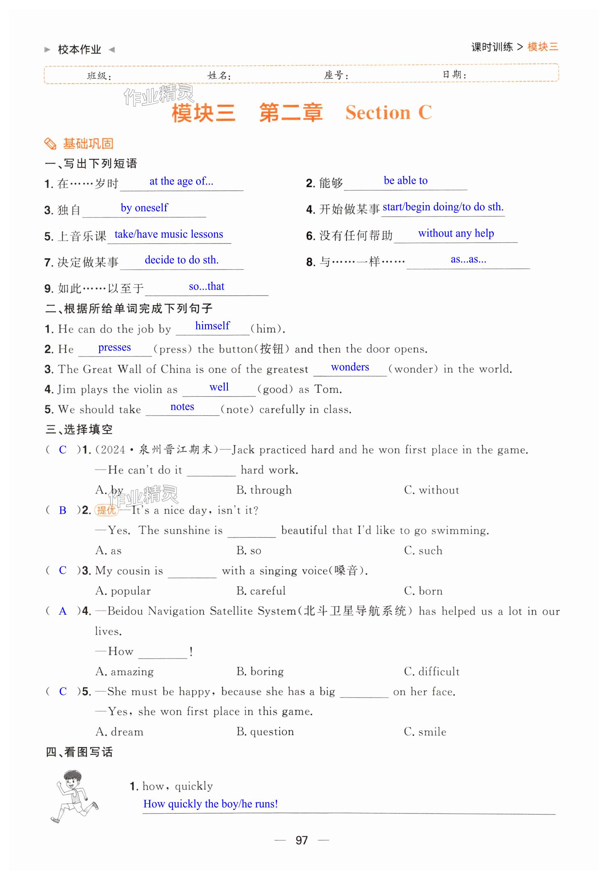 注:目前有些书本章节名称可能整理的还不是很完善,但都是按照顺序排列的,请同学们按照顺序仔细查找。练习册 2024年阳光同学分层设计八年级英语上册人教版福建专版 答案主要是用来给同学们做完题方便对答案用的,请勿直接抄袭。